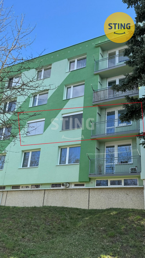 Dispozice bytu je 4+1, lodžie (3 m2) a dvě sklepní kóje (2x3 m2). Nachází se ve 2. patře zatepleného panelového domu z celkových čtyř pater.