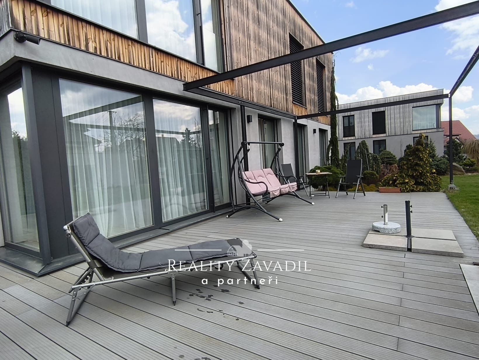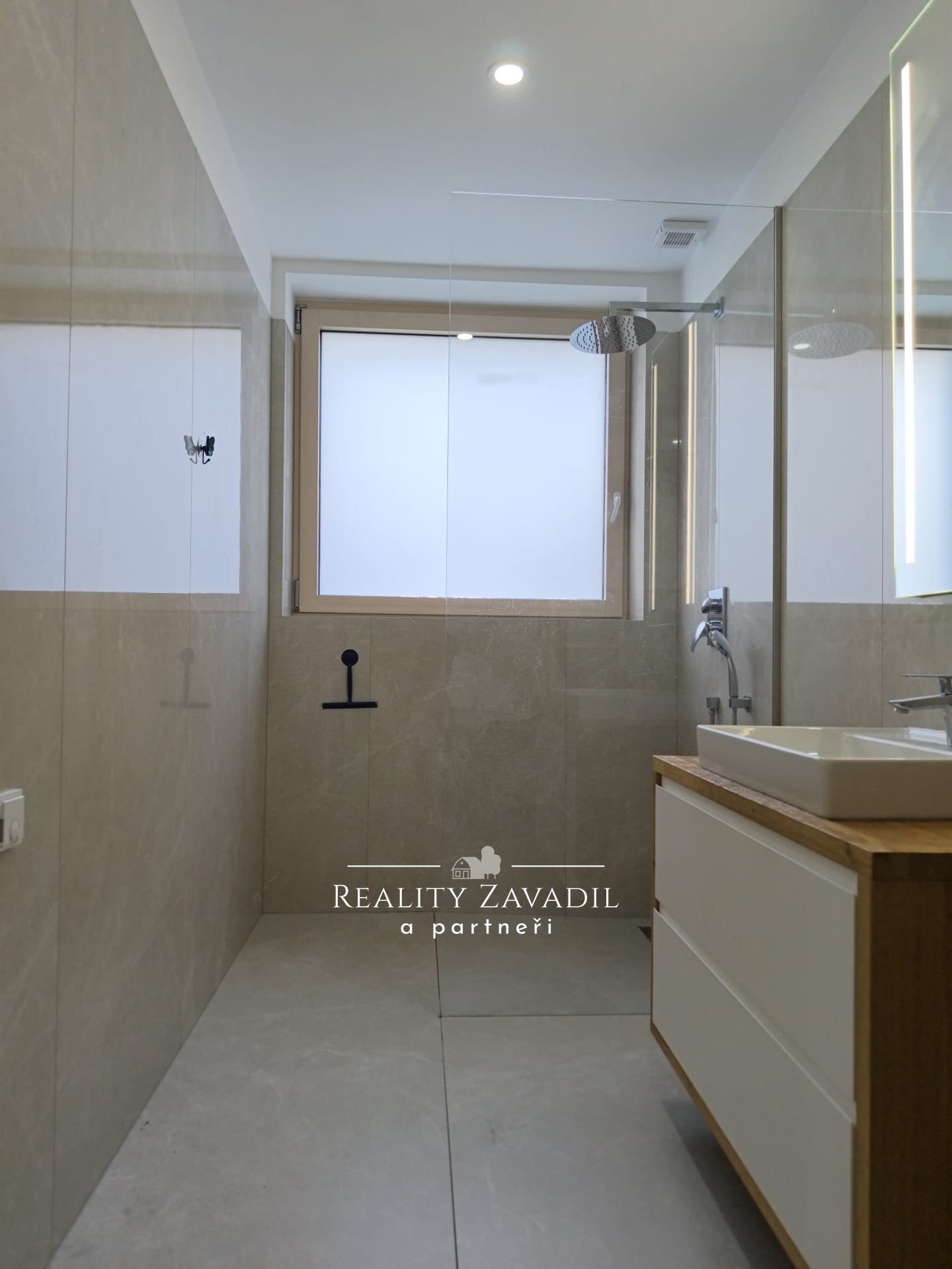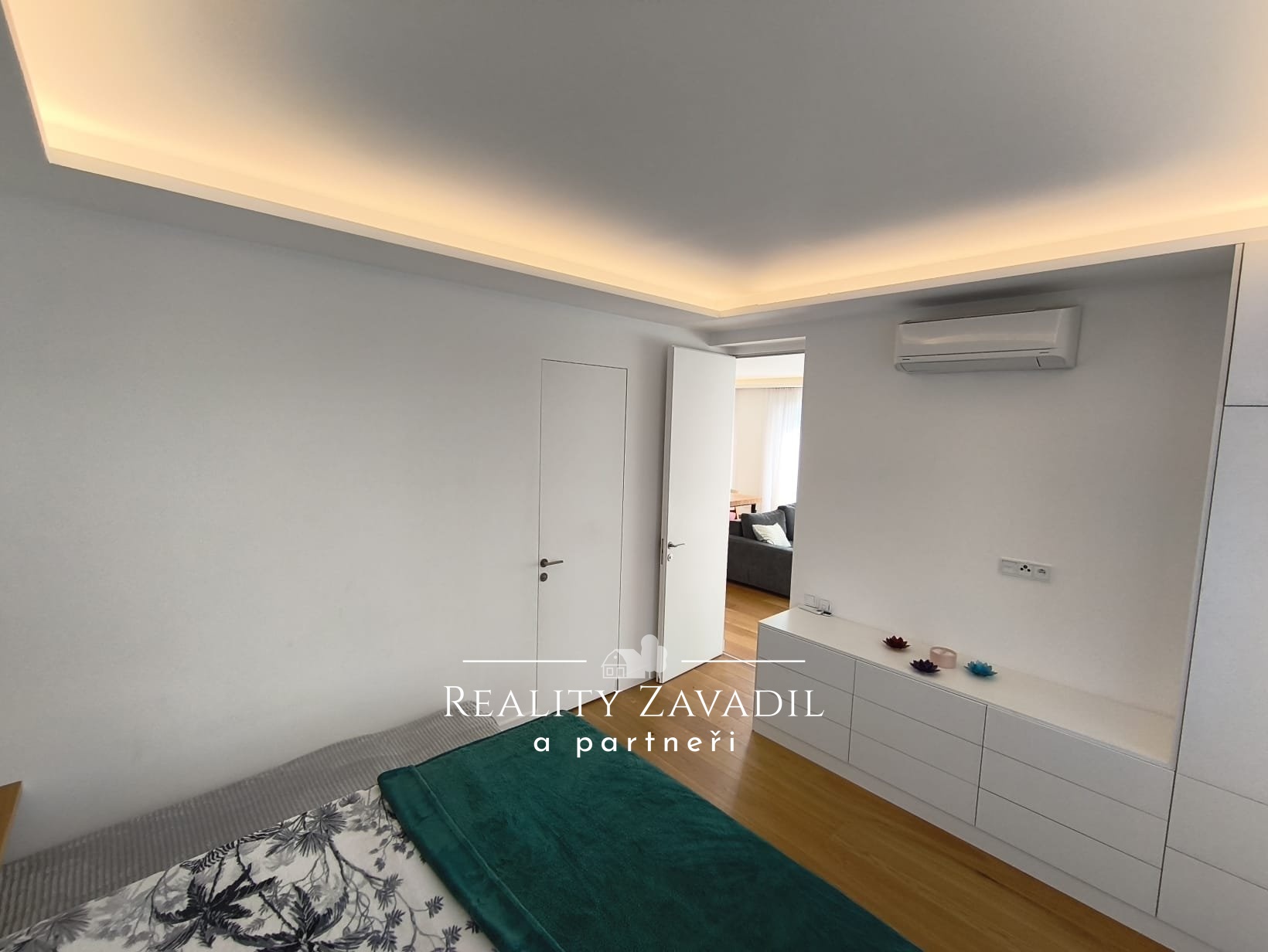 Byt je kompletně zařízený, včetně podlahového vytápění tepleným čerpadlem, klimatizací, předokenní žaluzie s el. pohonem a garáže s dálkově ovládanými vraty.