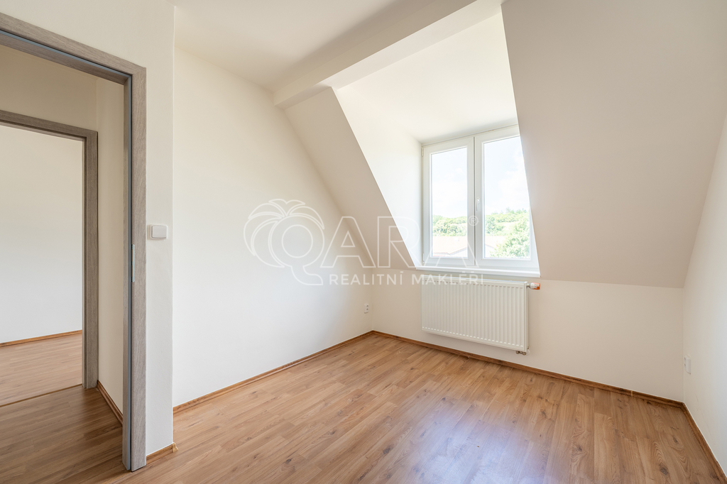 Bytová jednotka o podlahové ploše 63 m² se nachází ve 2. nadzemním podlaží cihlového domu. Skládá se z chodby o výměře 9,95 m², ze které jsou přístupné všechny místnosti, které jsou vzájemně neprůchozí. Kuchyně je spojená s obývacím pokojem a součástí je nová kuchyňská linka se spotřebiči (elektrickou troubou, varnou deskou, digestoří, lednicí s mrazákem i vestavěnou myčkou). V obývacím pokoji je příprava na krbová kamna. Dále jsou k dispozici tři samostatné pokoje. Koupelna je vybavena vanou, umyvadlem se skříňkou a zrcadlem. WC je samostatně.