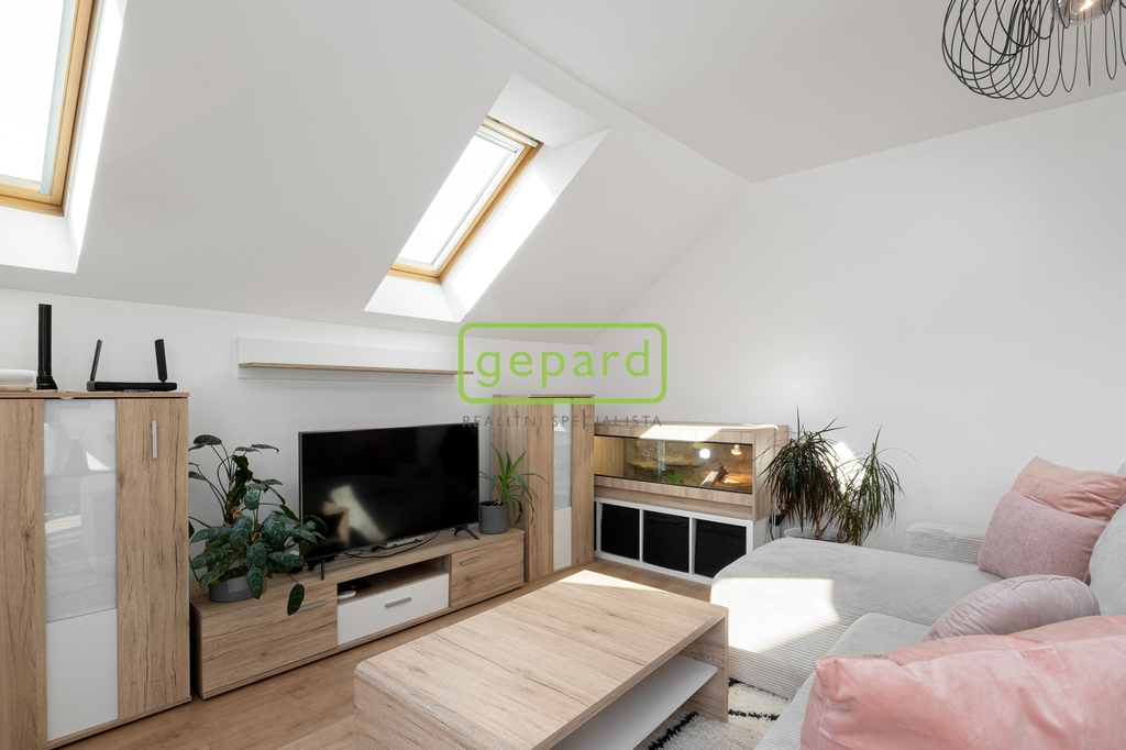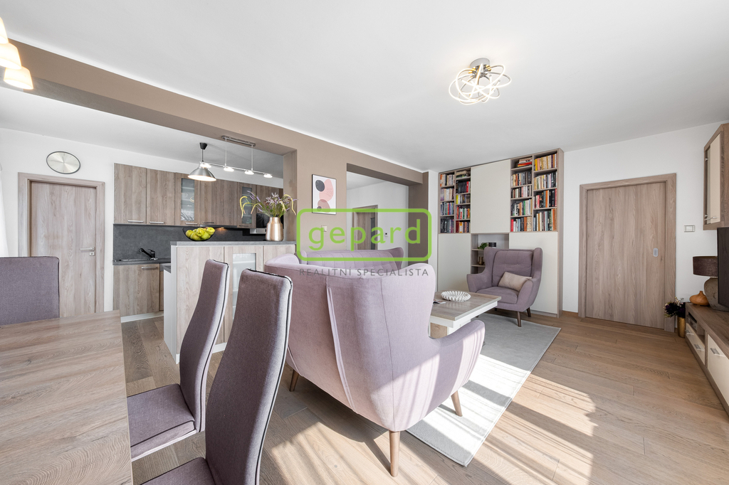 Už při vstupu vás překvapí příjemná vzdušnost a množství světla. Hlavní obytné podlaží působí otevřeně a přirozeně propojuje obývací prostor s kuchyní, odkud se vychází na balkon. Je to místo pro každodenní život a setkávání. Nechybí ložnice s vestavěnou skříní a koupelna s vanou. Horní patro nabízí další úroveň soukromí – samostatné pokoje, pracovnu i oddělenou koupelnu a toaletu. Velkým benefitem je terasa s otevřeným výhledem do okolní krajiny, která má své kouzlo v každém ročním období. Jeden z pokojů je navíc rozšířen o praktické spací patro, které přidává další využitelné metry – ať už pro spaní, relax nebo kreativní prostor.