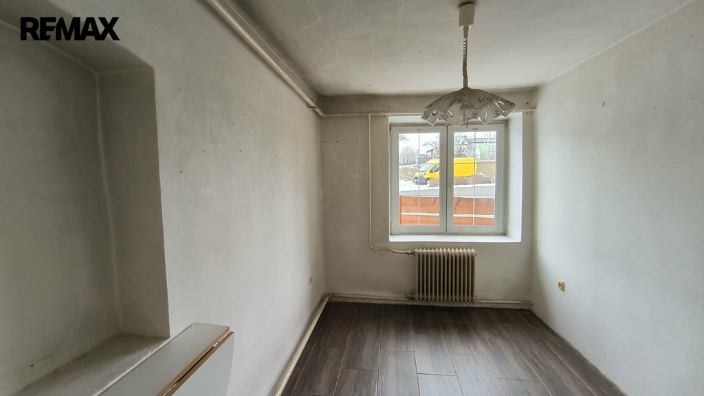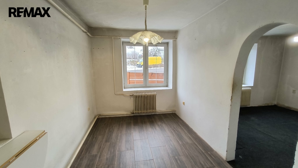 V přízemí domu se nachází prostorná vstupní chodba, kde je umístěn kotel na tuhá paliva, dále kuchyně a tři pokoje s plastovými okny.