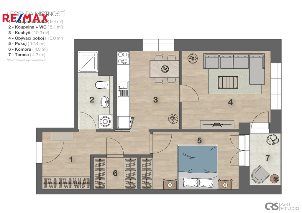| Dispozice/podlahová plocha: | 3+kk/60 m² |