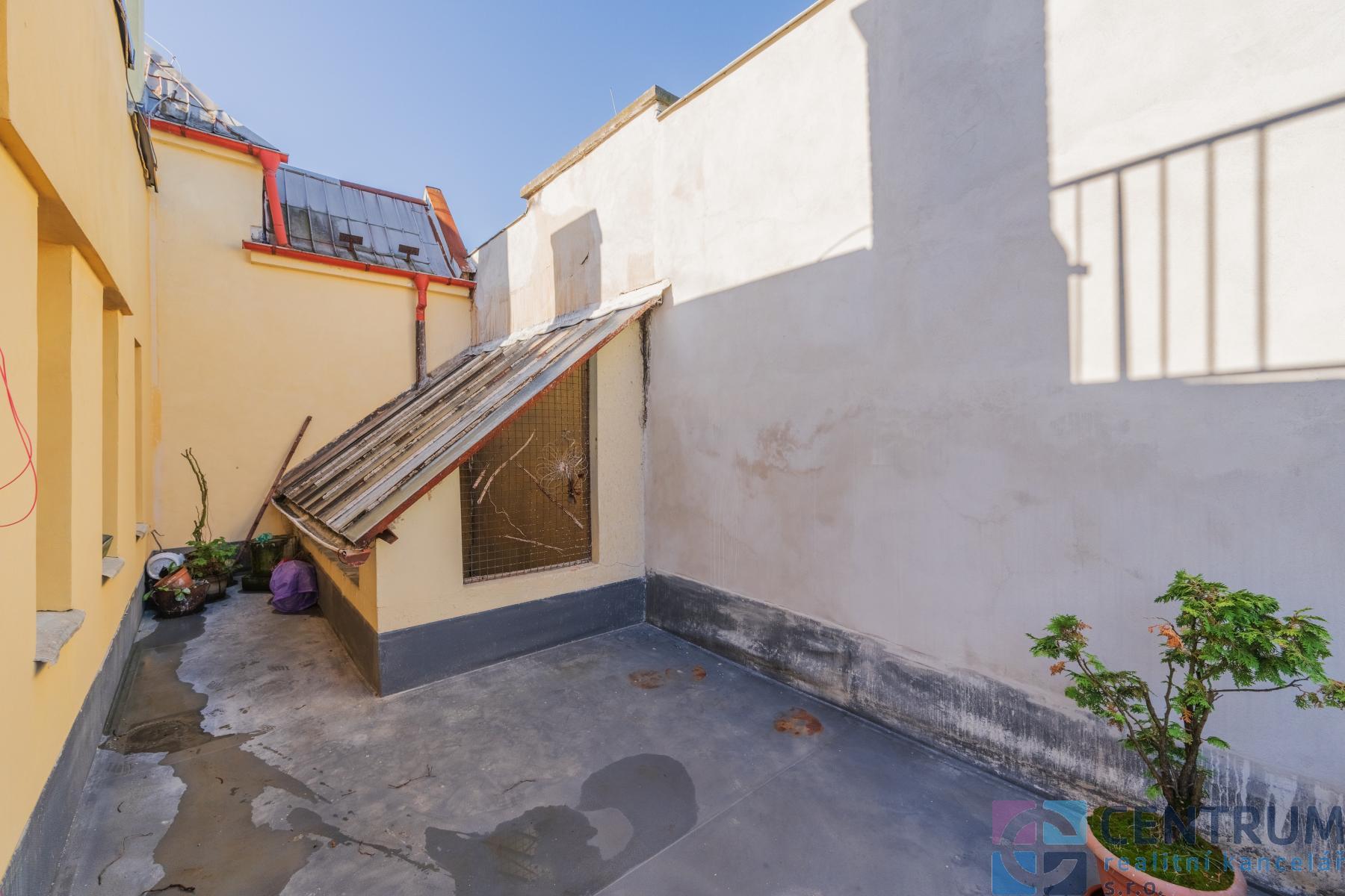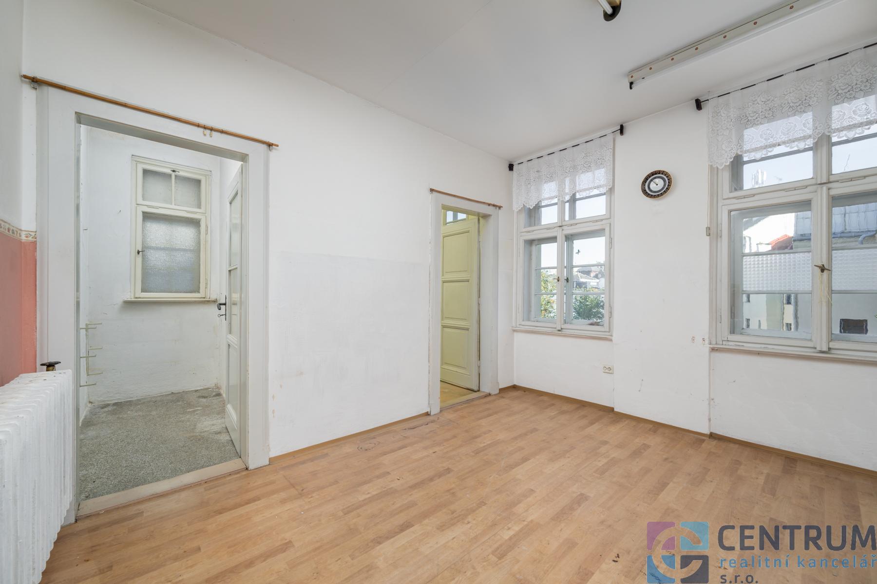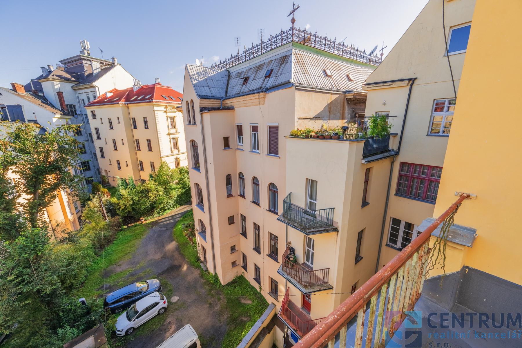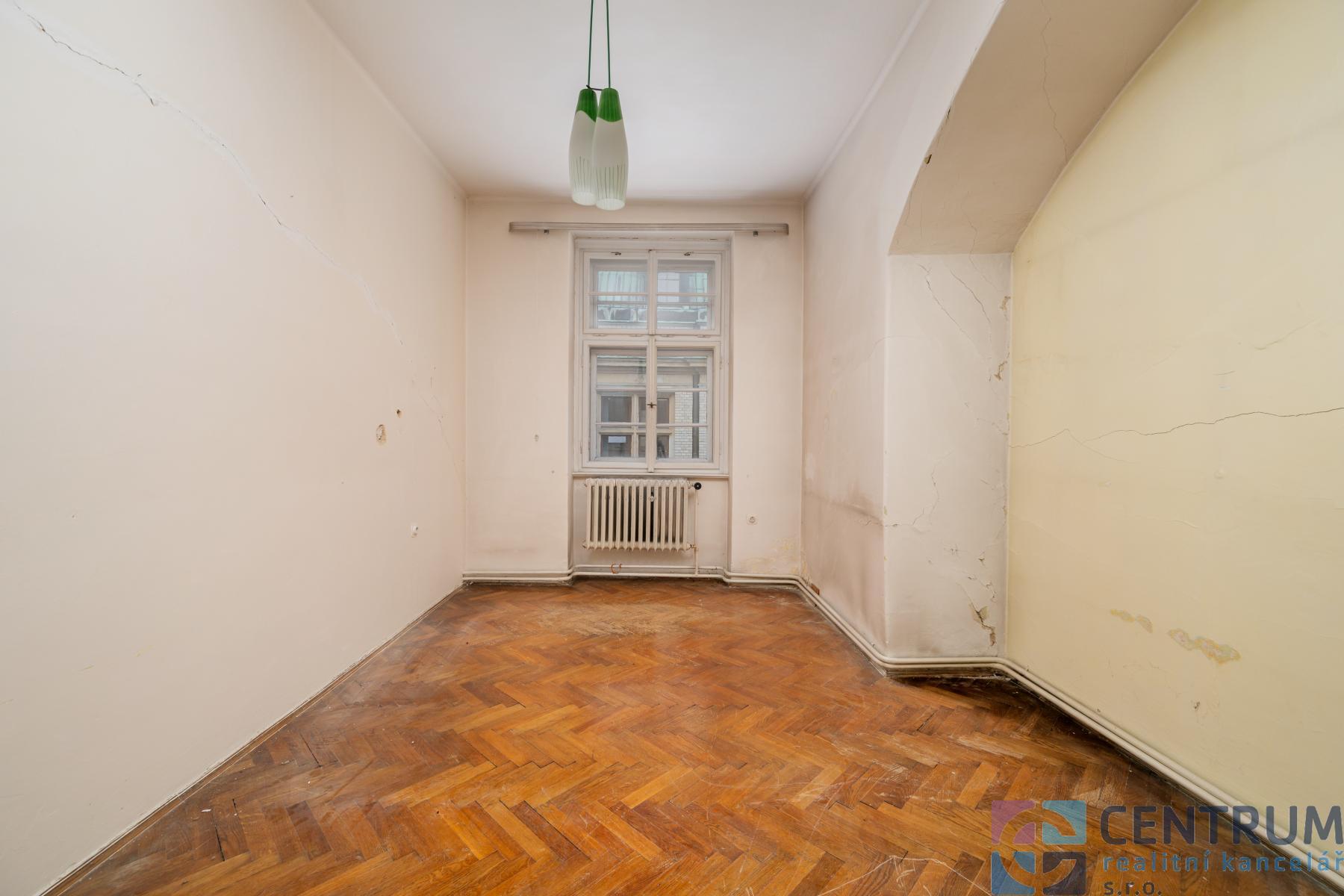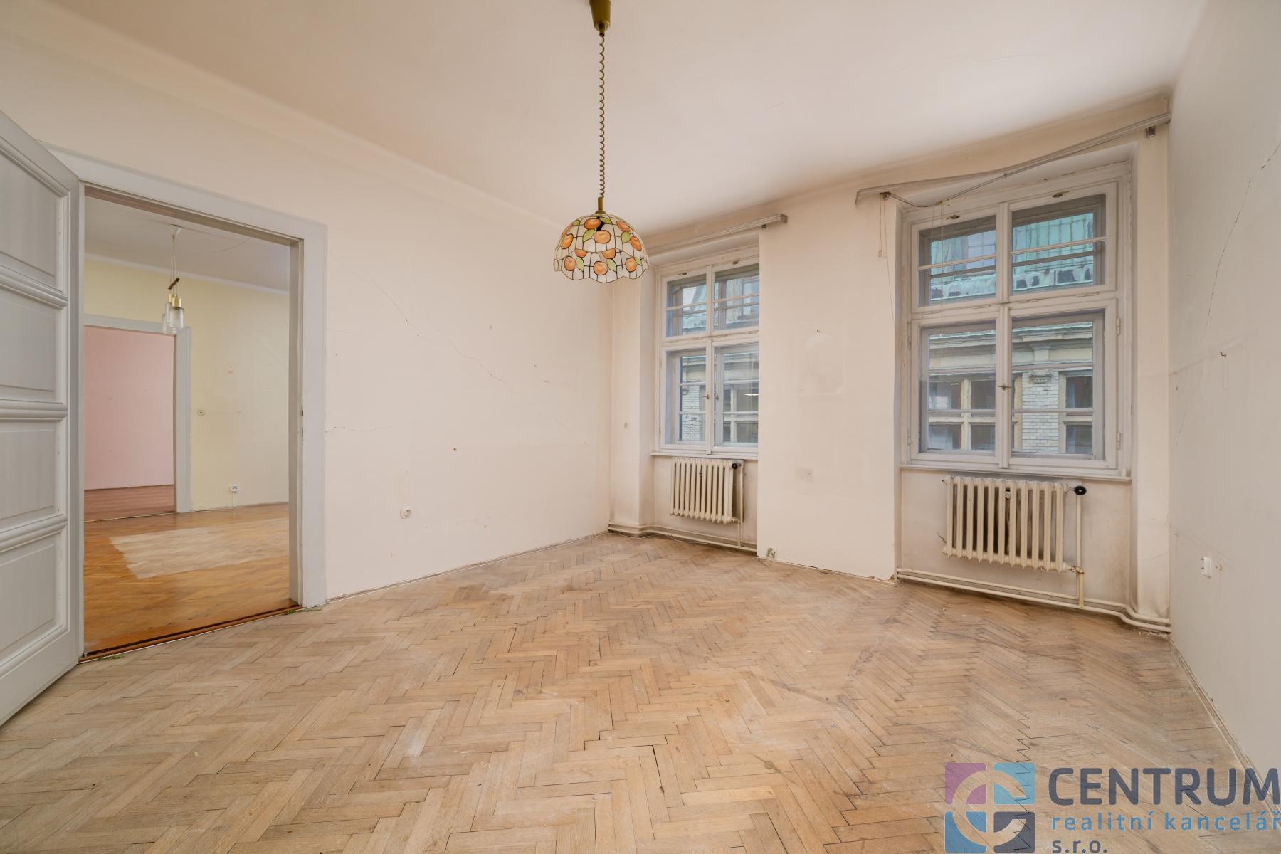 Za vstupními dveřmi nás čeká prostorná předsíň, ze které je vlevo přístup do čtyř velkých pokojů s parketami a okny na jih, rovně do prostoru sociálního zázemí koupelny a samostatné toalety, kdy koupelna je přístupná zároveň z jednoho z pokojů a vpravo do kuchyně, na kterou přímo navazuje spíž a menší pracovna se vstupem na terasu. S ohledem na původní stav bytu se v rámci rekonstrukce nabízí několik variant budoucího uspořádání. Můžete ponechat luxusní 4+1, vybudovat velké 6+kk, nebo třeba 2 byty. Střešní terasa je příjemným bonusem! S celým průběhem realizace umíme pomoci - od návrhu po dokončení - ozvěte se a zjistěte více o této možnosti!