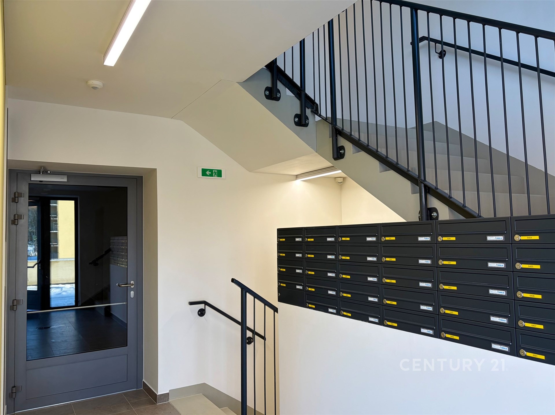 Obytná část domu je z bezpečnostního hlediska zajištěna přístupem na klíčovou kartu, což zaručuje vysoký standard soukromí a bezpečí pro všechny obyvatele.