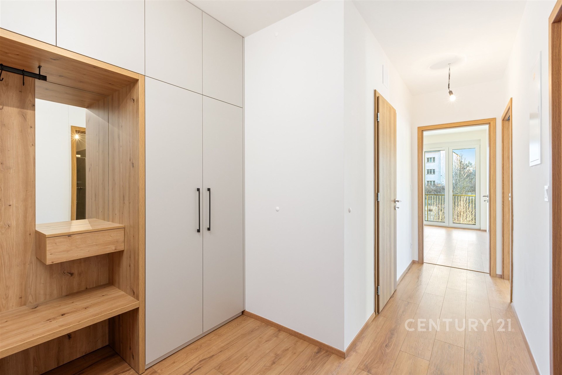 Byt je o dispozici 2KK a má celkem 60m² + balkon, který je přístupný z obou pokojů, tedy jak z ložnice, tak z obývacího pokoje. Je zapuštěný a je tak chráněný i před nepřízní počasí. Součástí bytu je velmi prostorná komora, ze které si můžete vytvořit šatnu nebo jinak zamýšlený úložný prostor.