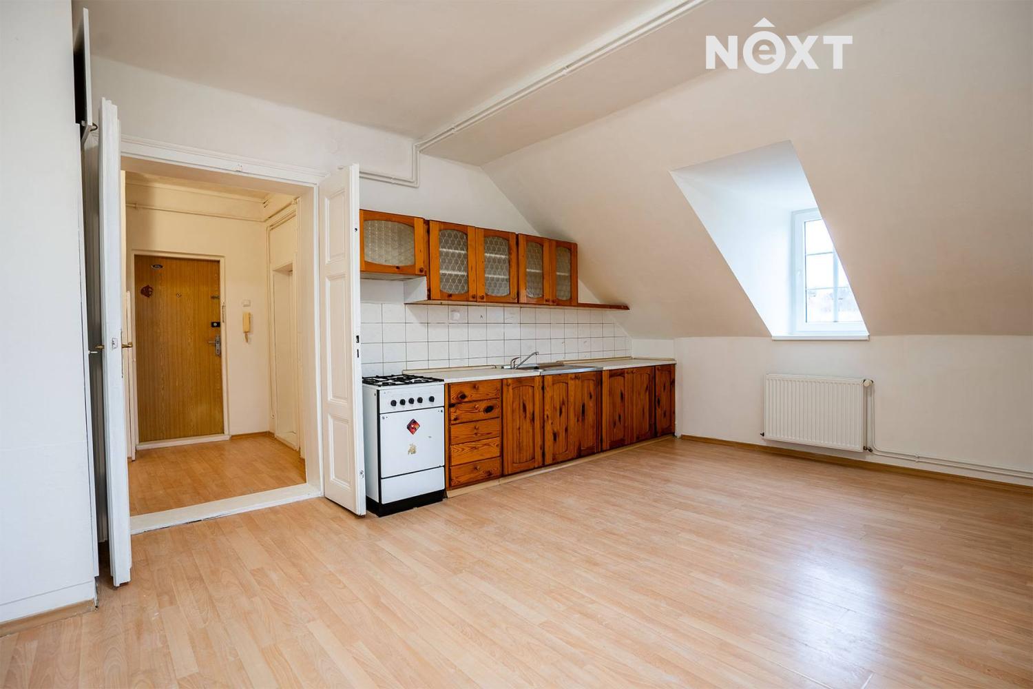 Byt má praktické a velmi dobře využitelné dispoziční řešení. Vstupní chodba nabízí dostatek prostoru pro úložné skříně a plynule navazuje na jednotlivé místnosti bytu. Obývací pokoj s kuchyňským koutem tvoří přirozené centrum bytu a díky své velikosti umožňuje pohodlné uspořádání obývací i jídelní části. Kuchyňská linka je funkční, v původním, udržovaném stavu. Další dvě místnosti lze využít jako ložnici a dětský pokoj, případně pracovnu či pokoj pro hosty. Koupelna je vybavena vanou, umyvadlem a prostorem pro pračku, toaleta je řešena samostatně.