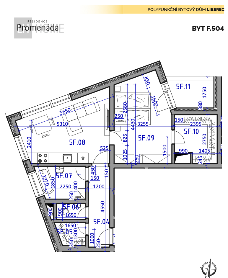 | Dispozice/podlahová plocha: | 2+kk/55 m² |