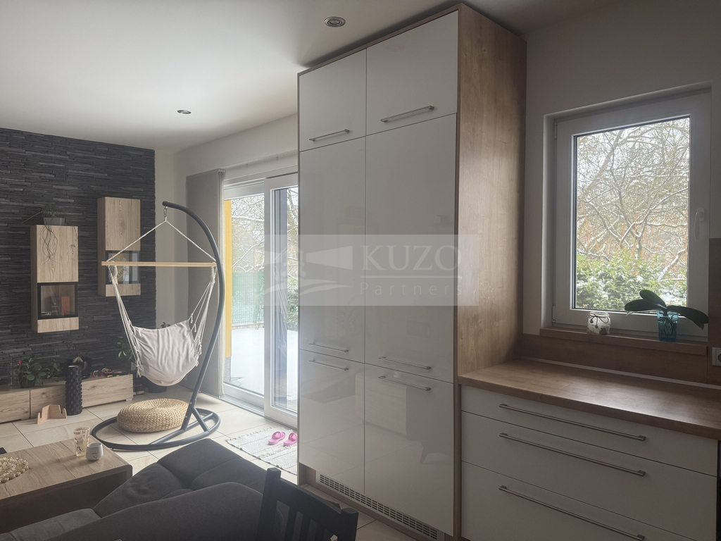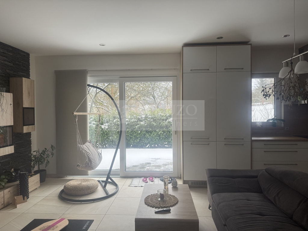 Tento prostorný byt má výhled pouze do vlastní zahrady a na nejbližší okolí. Příjezdová místní komunikace je na opačné straně, do bytu tak nezasahuje ruch okolní komunikace.