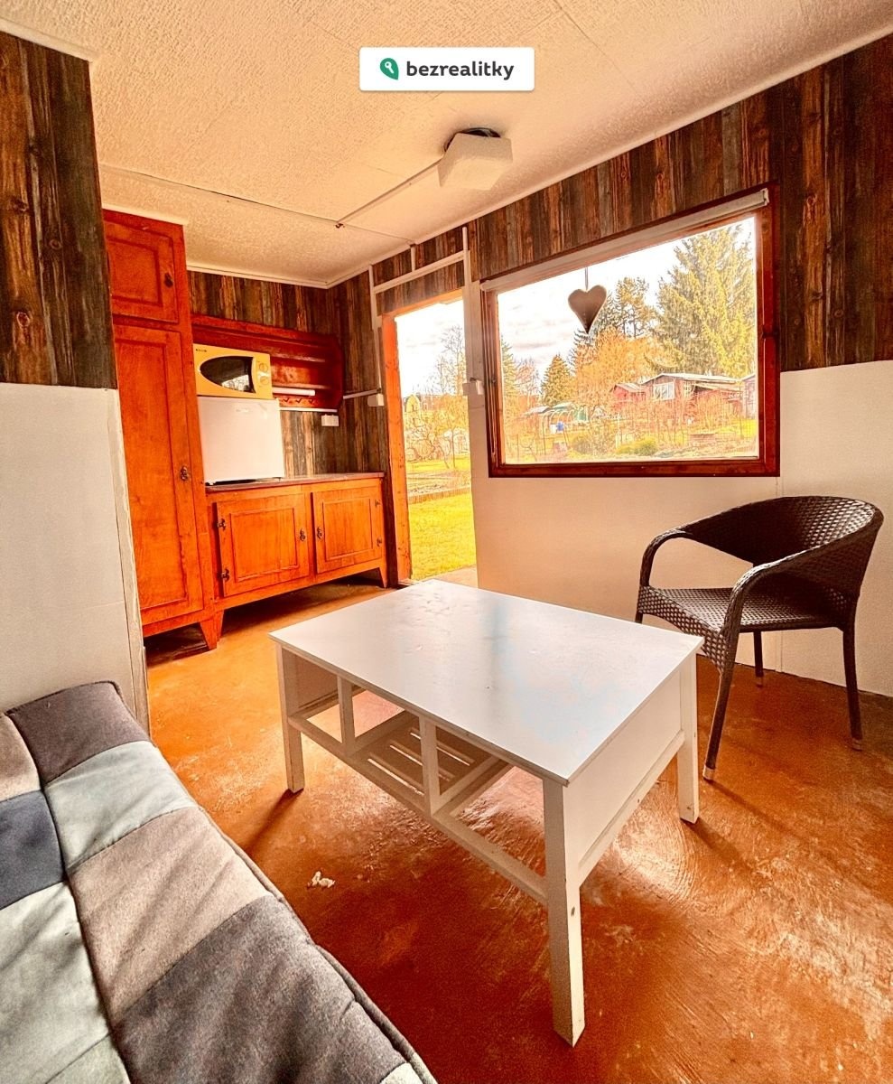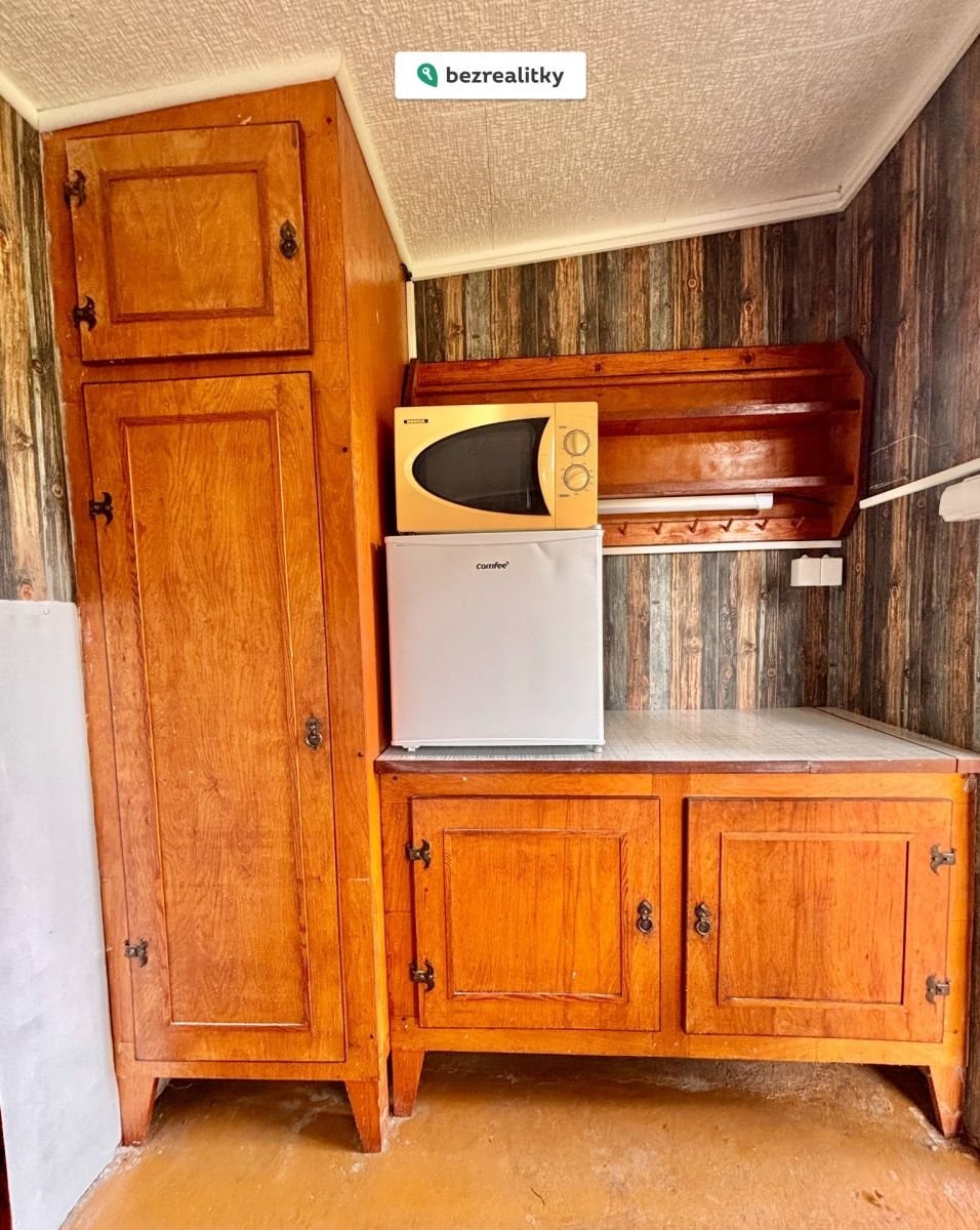 Chatka má 12 m2, je útulná pro odpočinek. Je tady nový rozvod elektřiny, užitková voda z rybníčku. Za chatkou je ještě kůlnička na nezbytné zahradní nářadí. Část nářadí a vybavení tady zůstane. Chatka je nedávno vymalovaná, vytapetovaná, i zvenčí natřená.