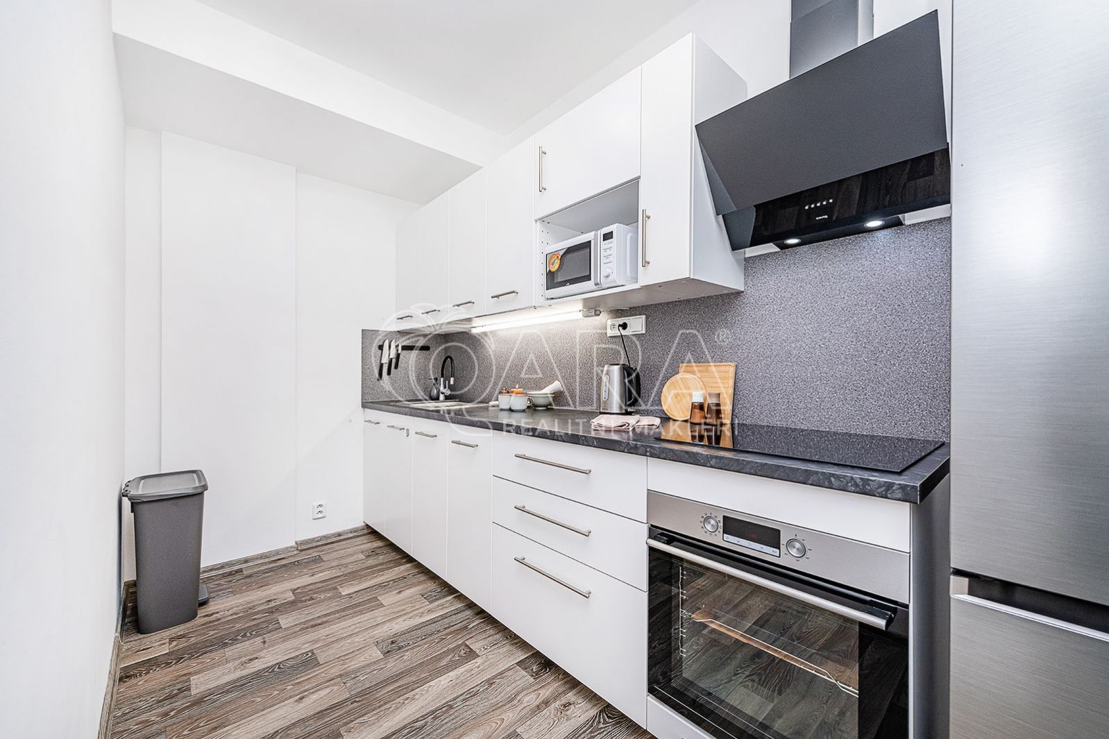 Součástí bytu je kuchyňská linka s vestavěnou troubou, indukční varnou deskou a digestoří. Byt se prodává bez nábytku.