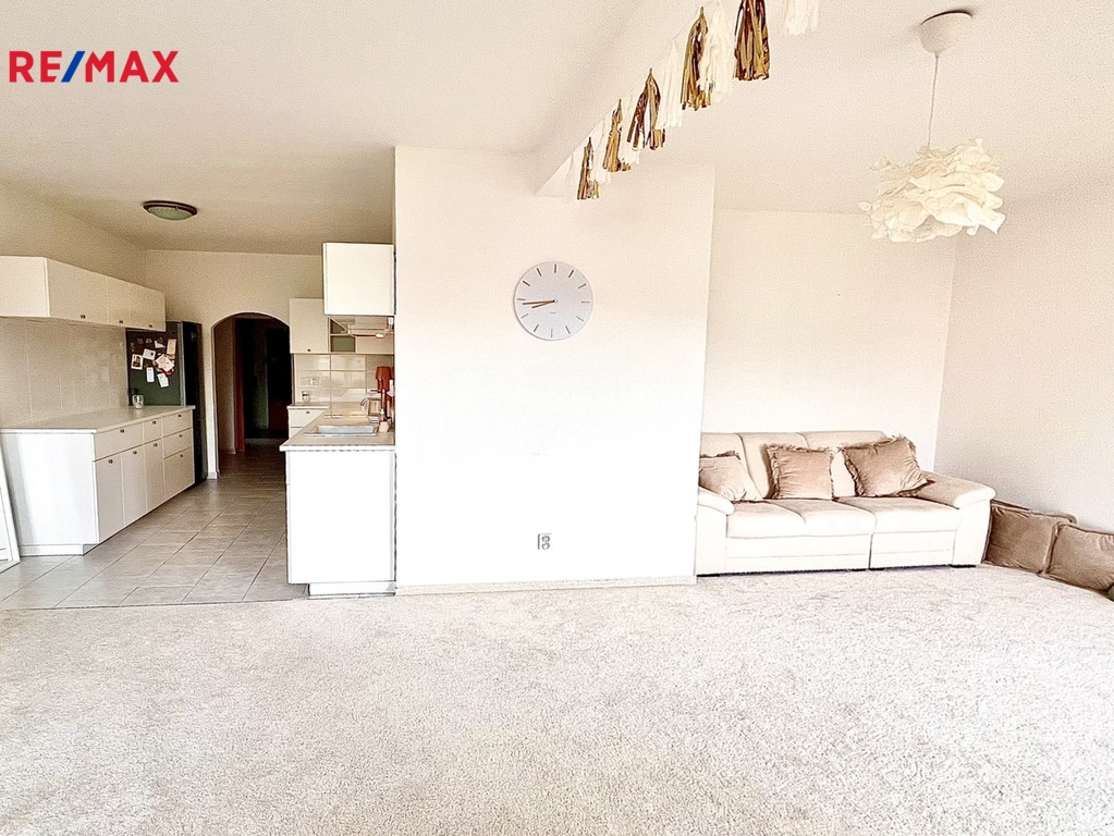 Denní zóna: Rozsáhlý obývací pokoj s kuchyňským koutem (linka se spotřebiči v ceně).