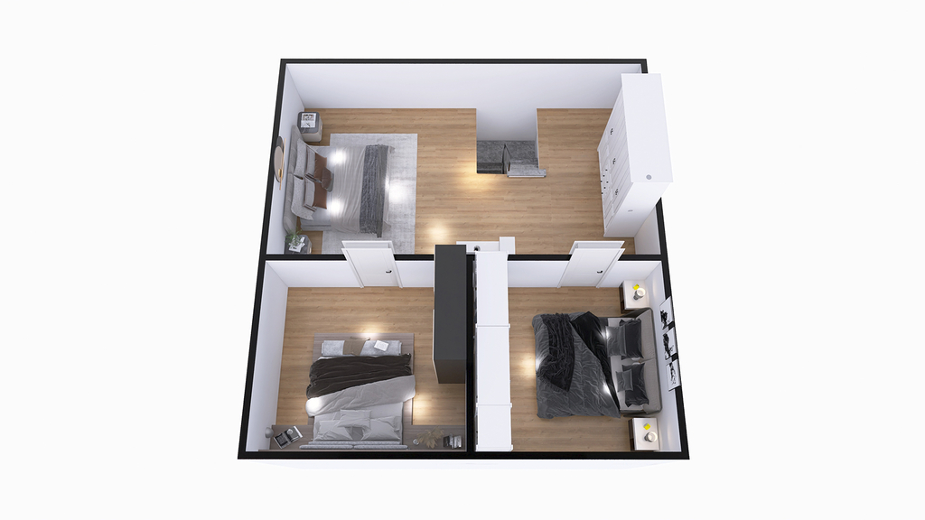 Dům v patře disponuje třemi pokoji, které lze snadno upravit na dětské pokoje, pracovnu, nebo pokoj pro hosty, čímž se skvěle přizpůsobí potřebám Vaší rodiny. Je také možnost rozdělit vrchní patro na čtyři pokoje, ve spolupráci s námi.
