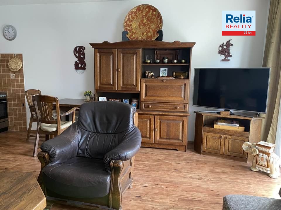 Součástí ceny je i kompletní vybavení, které vidíte na fotkách. Kuchyňská linka, elektrický sporák s el. troubou, digestoř, lednice, myčka nádobí. Úložné prostory jsou řešeny obývací stěnou, komodami, šatní skříní na chodbě. Veškerý nábytek je v dobrém stavu, s péčí udržovaný.