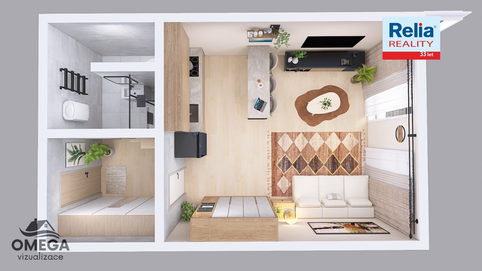 Pro inspiraci přikládáme vizualizaci, jak byste si svůj nový domov mohli útulně zařídit.