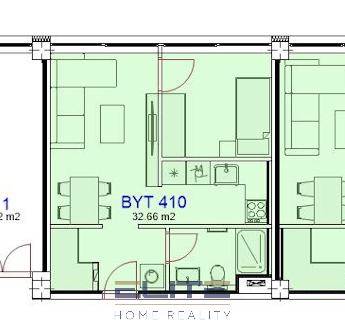 | Dispozice/podlahová plocha: | 2+kk/33 m² |