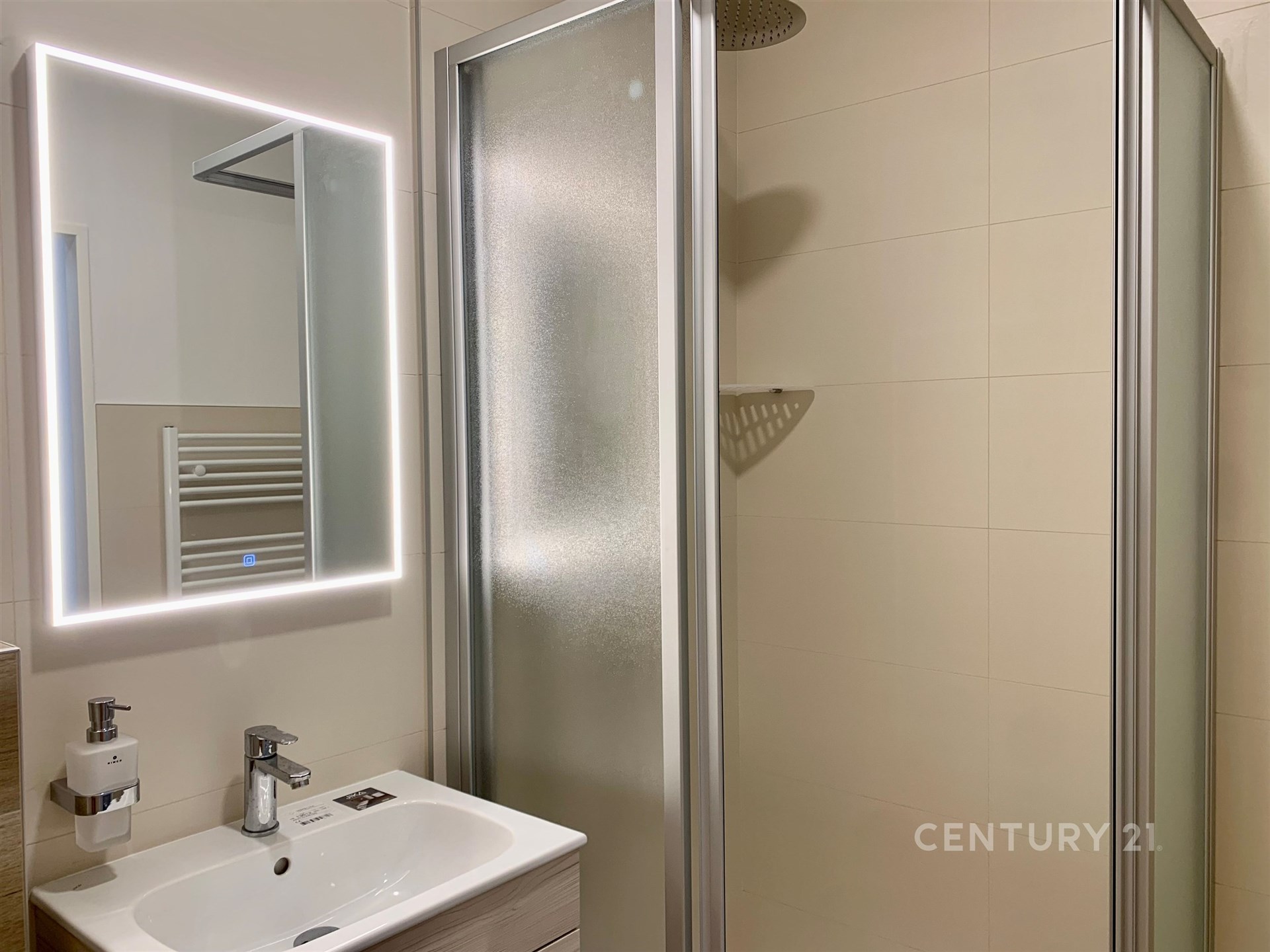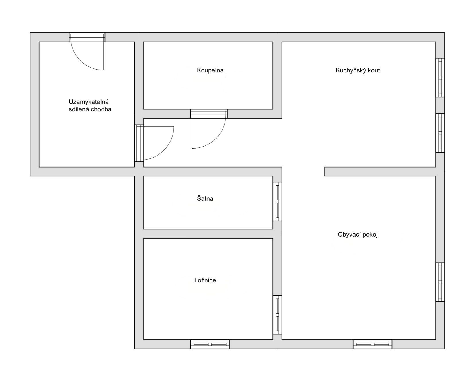 Ložnice je přístupná z obývacího pokoje a disponuje již připraveným osvětlením nad budoucí postelí. Nová moderní koupelna nabízí sprchový kout, umyvadlo se zrcadlem, toaletu i vyhrazené místo pro pračku. Velkou výhodou je samostatná místnost bez okna, která ideálně poslouží jako prostorná šatna nebo komora. V celém bytě jsou na oknech instalovány praktické rolety den/noc a před samotným vchodem do bytu se nachází uzamykatelná předsíň sdílená pouze s jedním sousedem, vhodná například pro umístění botníku.