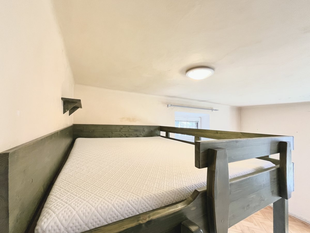 Byt se nabízí částečně vybavený. Kuchyně disponuje lednicí, elektrickým sporákem, mikrovlnnou troubou a digestoří. V obývací části je spací patro, vestavěné police a pračka. V druhém pokoji se nachází velká vestavěná skříň. V koupelně je sprchový kout, umyvadlo, toaleta a topný žebřík.