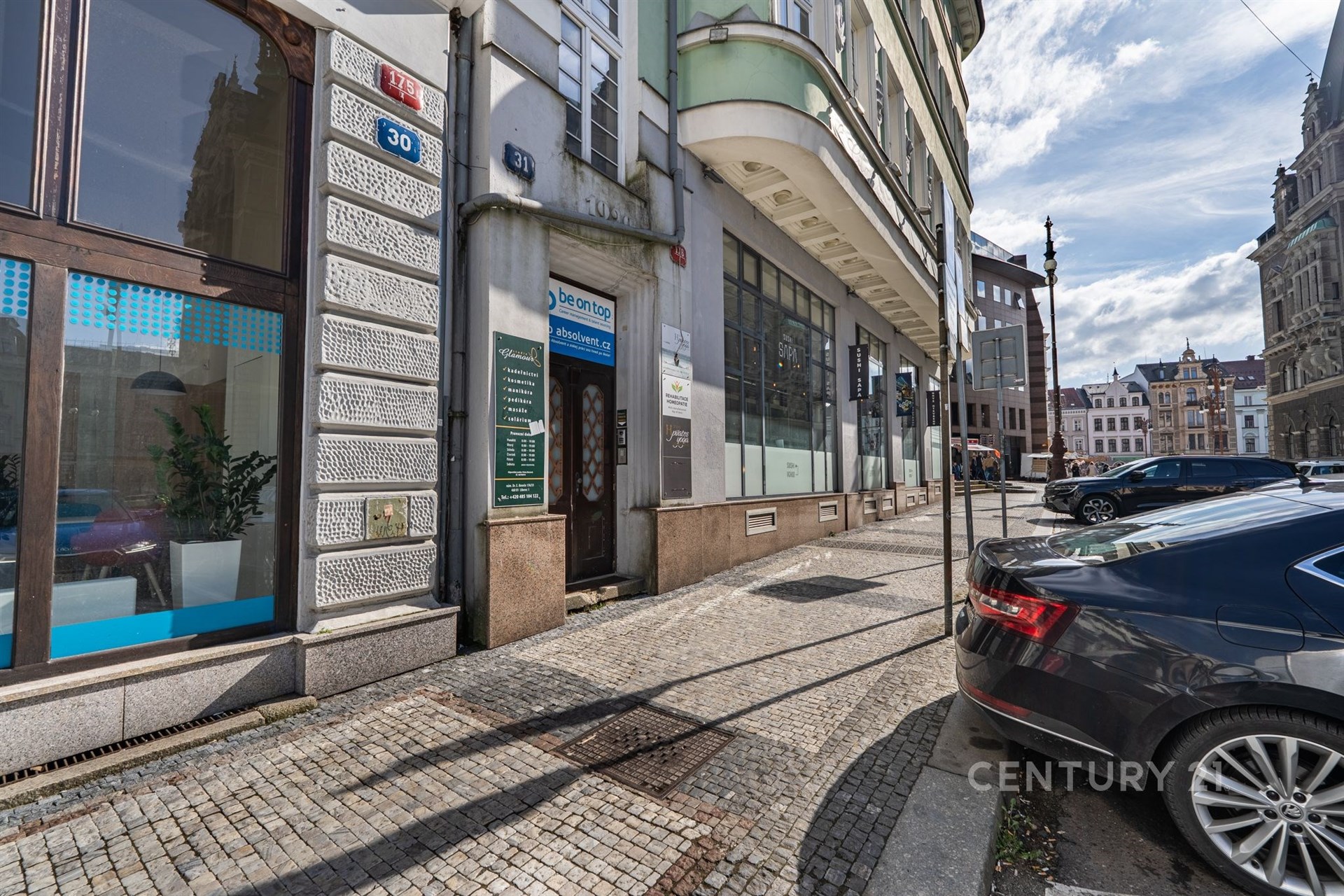 Významnou výhodou je samotná lokalita – kanceláře se nachází přímo na rušném náměstí s vysokou koncentrací obchodů, restaurací a služeb. Díky tomu je zajištěn stálý pohyb lidí a skvělá dostupnost jak MHD, tak autem.