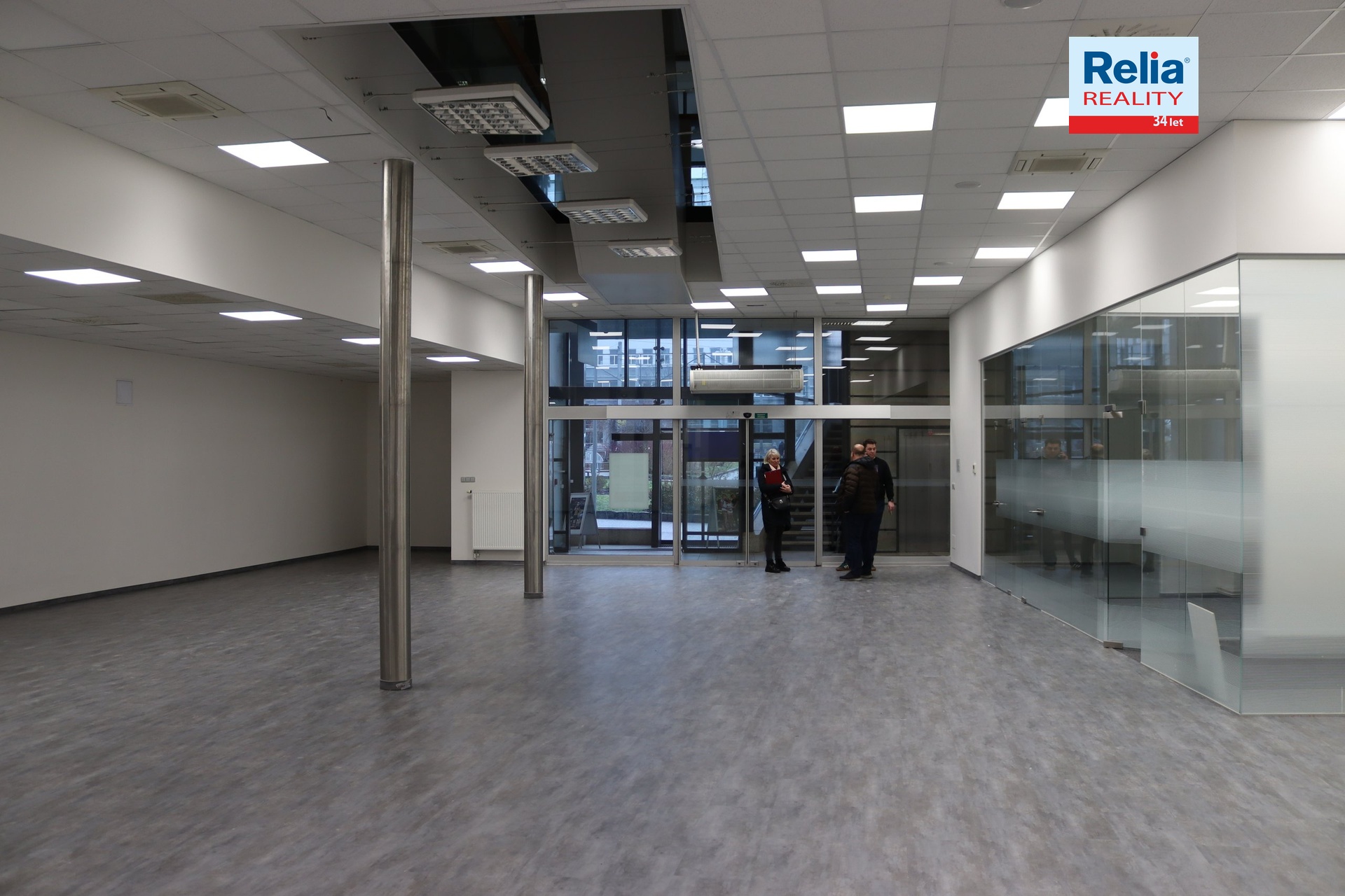 Prostor má vstup přímo ze Soukenného náměstí prosklenou částí budovy, kam je možné umístit panel s označením firmy. Pronajímatel je ochotný přizpůsobit dle domluvy prostory nájemcům. Možnost využití občerstvení restaurace Potrefená husa ve vedlejší části domu. Nájemce nehradí provizi RK.