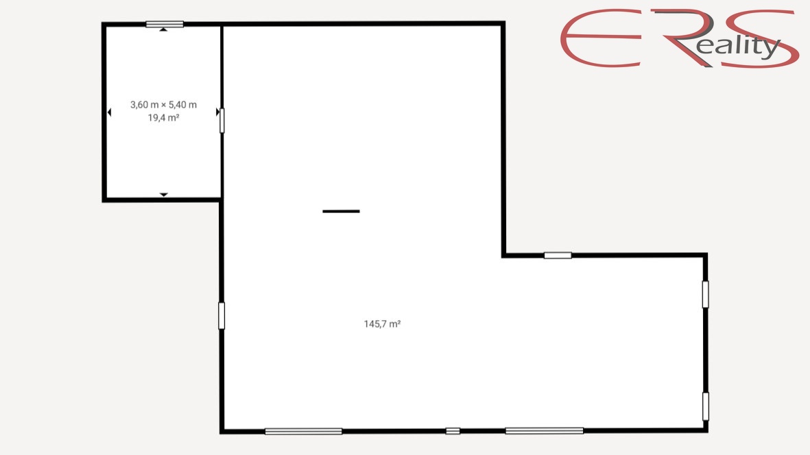 • Přilehlá místnost 19 m² – vhodná jako kancelář, sklad či zasedací místnost