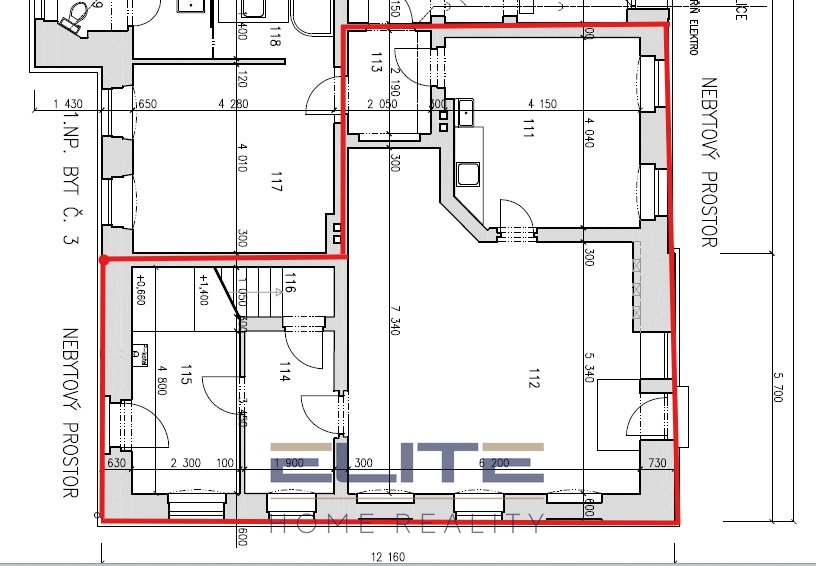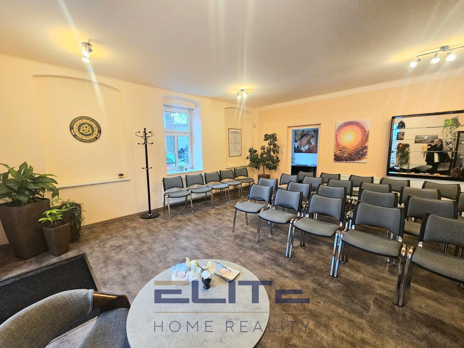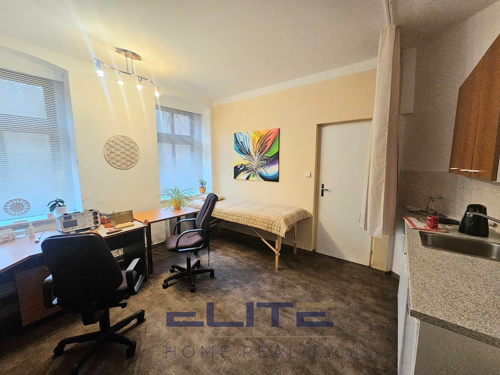 Přední část tvoří místnost o 37 m² se vstupem z hlavní ulice a malou výlohu, na ní navazuje druhá místnost 16 m² s kuchynskou linkou. Na tuto část navazuje menší zázemí, skladové prostory s plynovým kotlem a vstupem z parkoviště. Wc je umístěno v chodbě, v mezipatře. Prostor je vybaven prosklenými komodami, židlemi, masážním lehátkem. ideální pro terapeutická setkání, přednášky, či skupinovou práci. Možnost využít i jako šicí dílna, ordinace atd...