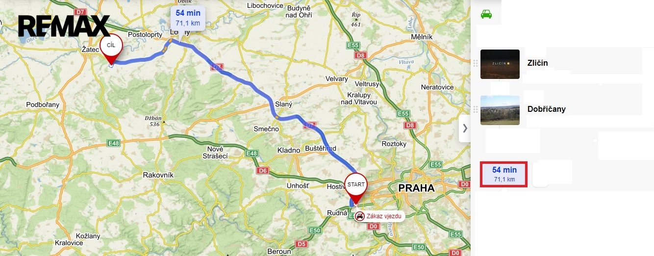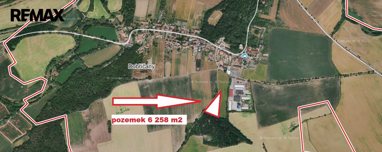 Pozemek se nachází v okrajové části malé obce Dobříčany s velmi dobrou dostupností města Žatce (5 minut) a Prahy (55 minut).