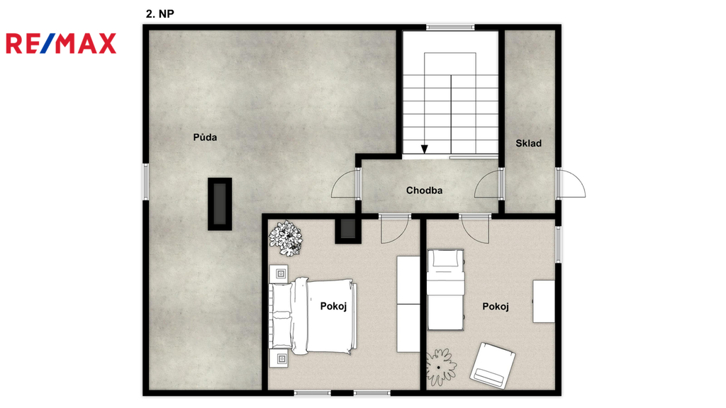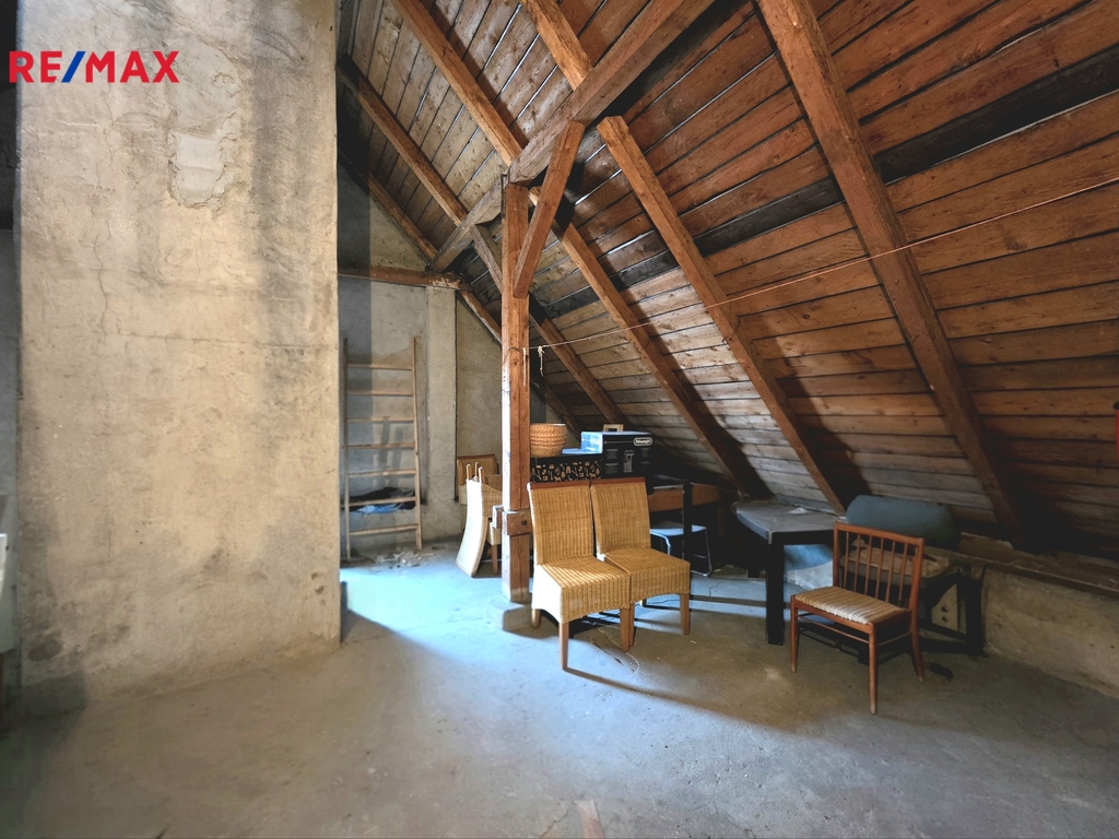 Dům o dispozici 4+1 disponuje částečně rekonstruovaným přízemím, kde se z prostorné předsíně dostanete do ostatních částí domu: ložnice se šatnou, kuchyně s jídelním koutem, stylového obývacího pokoje. Součástí přízemí je i šikovná spíž, koupelna a oddělené wc. V prvním nadzemní podlaží se nachází další dva pokoje a prostor používaný jako sklad či dílna s možností výstupu na střechu předsíně. Dalším prostorem je rozlehlá půda, která umožňuje případně další růst. Dispozice je patrná z přiložných 2D/3D půdorysů. Vytápění je řešeno automatickým kotlem na tuhá paliva.