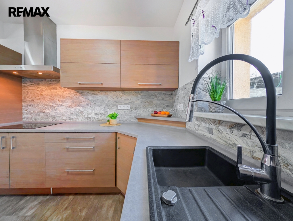 Součástí prodeje je kvalitní kuchyňská linka se spotřebiči, která zůstává součástí vybavení domu.