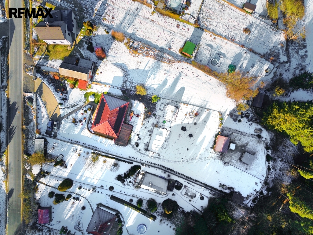 Na pozemku se nachází zateplený zděný dům o dispozici 5+kk, ve velmi dobrém technickém stavu, připravený k okamžitému užívání. Dům je vytápěn tepelným čerpadlem s teplovodním podlahovým topením, ohřev vody zajišťuje bojler 200 l. Energetickou soběstačnost podporuje fotovoltaická elektrárna 10 kWh se záložním zdrojem a baterií 10 kWh, díky čemuž jsou provozní náklady velmi nízké (cca 3 000 Kč měsíčně). Energetická třída B.