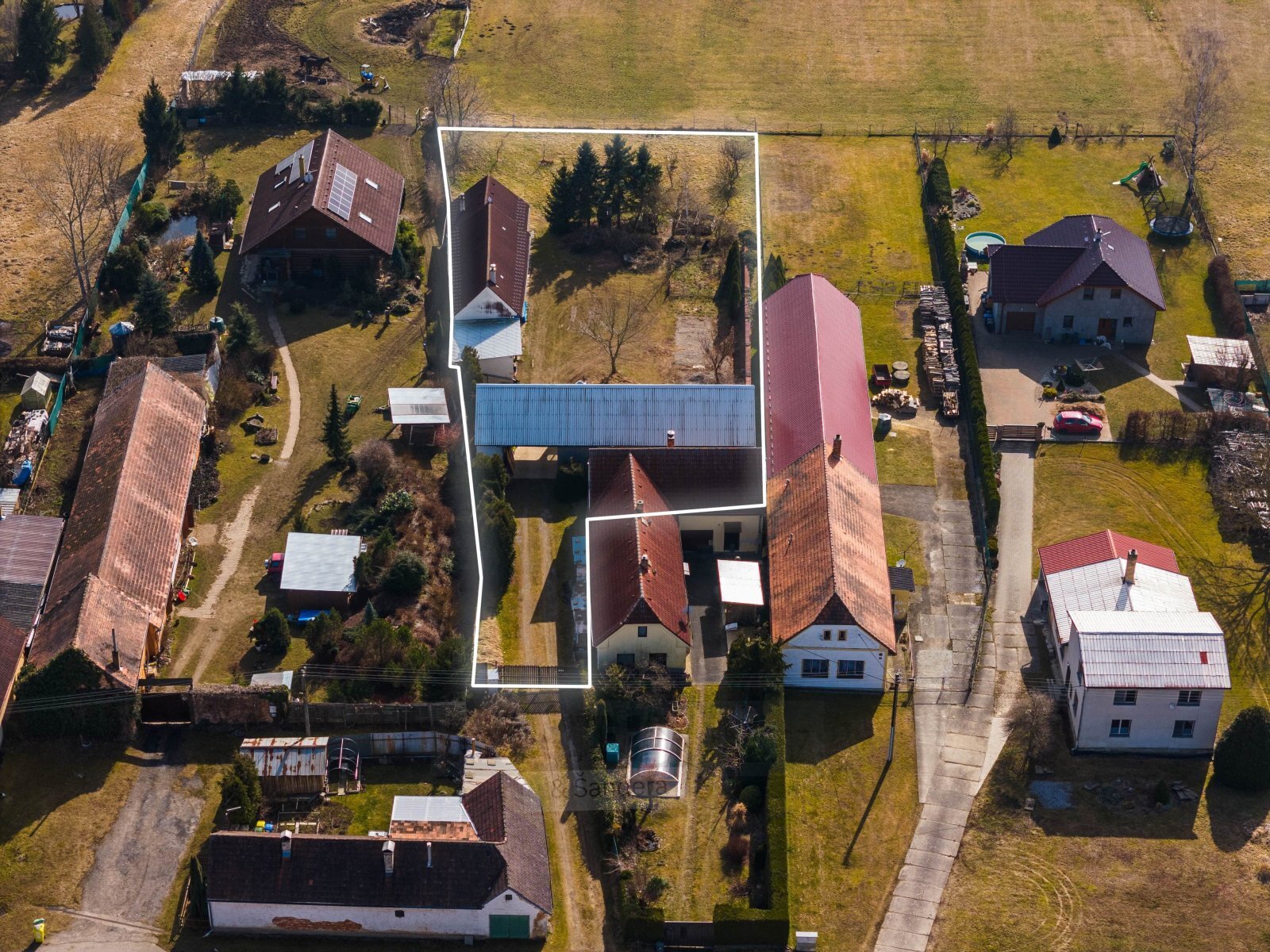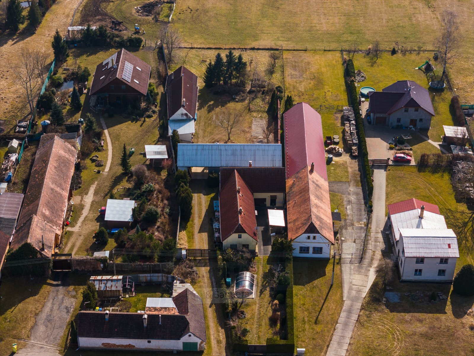 Přístup je zajištěn přímo z obecní komunikace. Objekt nabízí výrazný potenciál jak pro budoucí rodinné bydlení, tak pro kombinaci bydlení a podnikání.