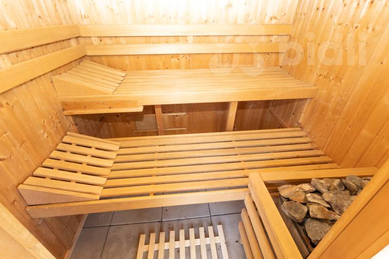 Velkým benefitem je domácí sauna umístěná na pozemku.