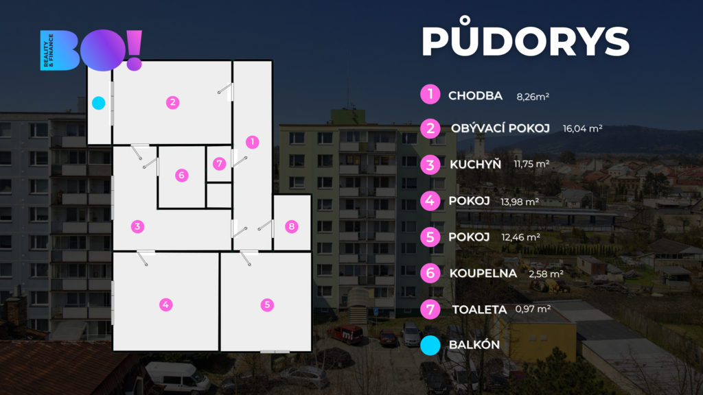 | Dispozice/podlahová plocha: | 3+1/70 m² |