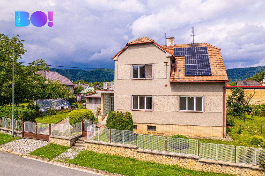 - Na střeše domu je nově instalovaná fotovoltaická elektrárna, která zajišťuje ohřev vody a může být využita i pro elektrické vytápění. Výrazně tím snížíte náklady na provoz.