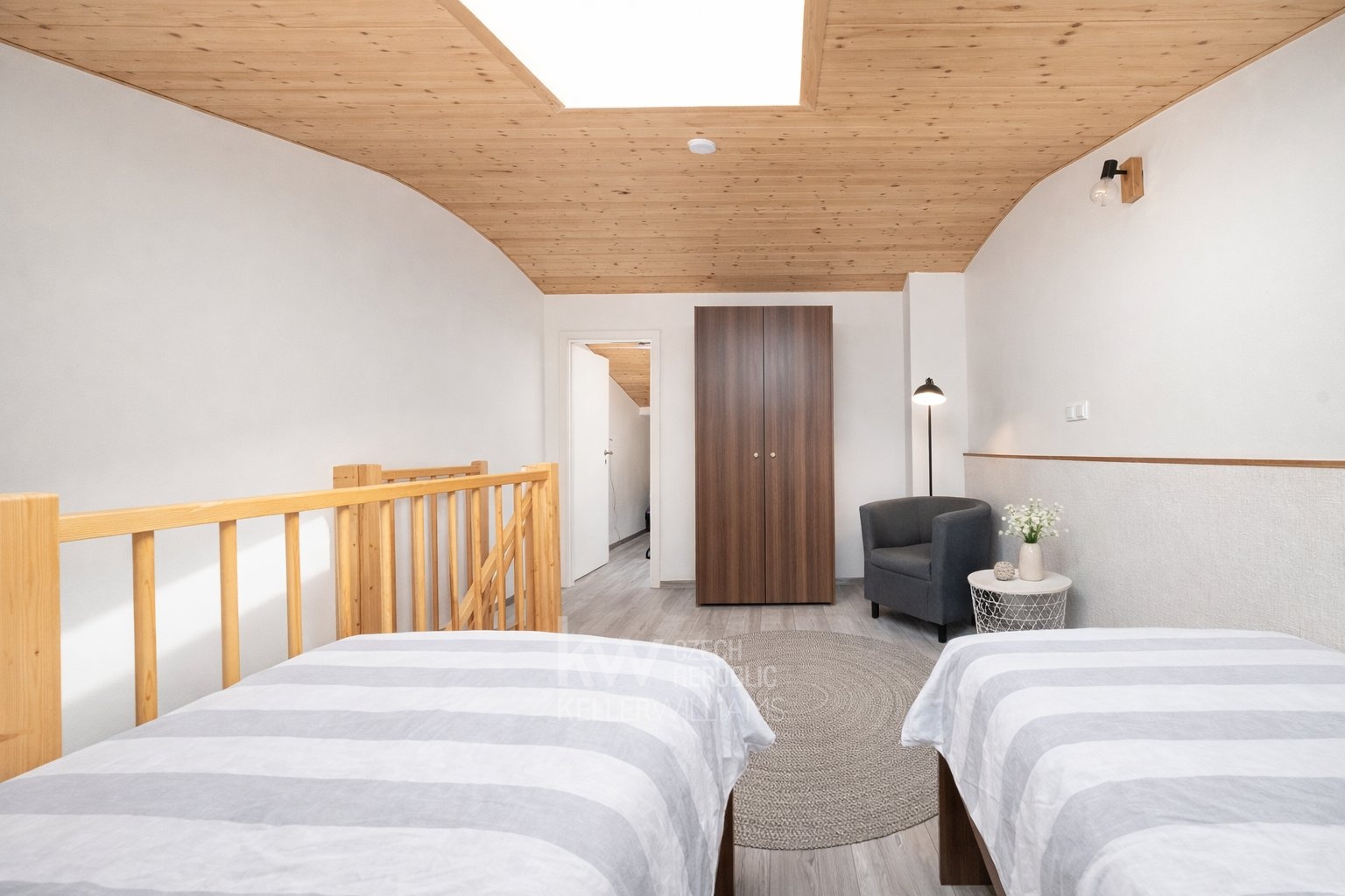 Horní podlaží bylo upraveno a rozšířeno oproti původnímu standardnímu provedení. Reálně tak nabízí přibližně o 5 m² více využitelné plochy, než je výměra uvedená v prohlášení vlastníka. Prodává se dle oficiálně zapsané výměry, budoucí majitel však získává prakticky větší užitný prostor.