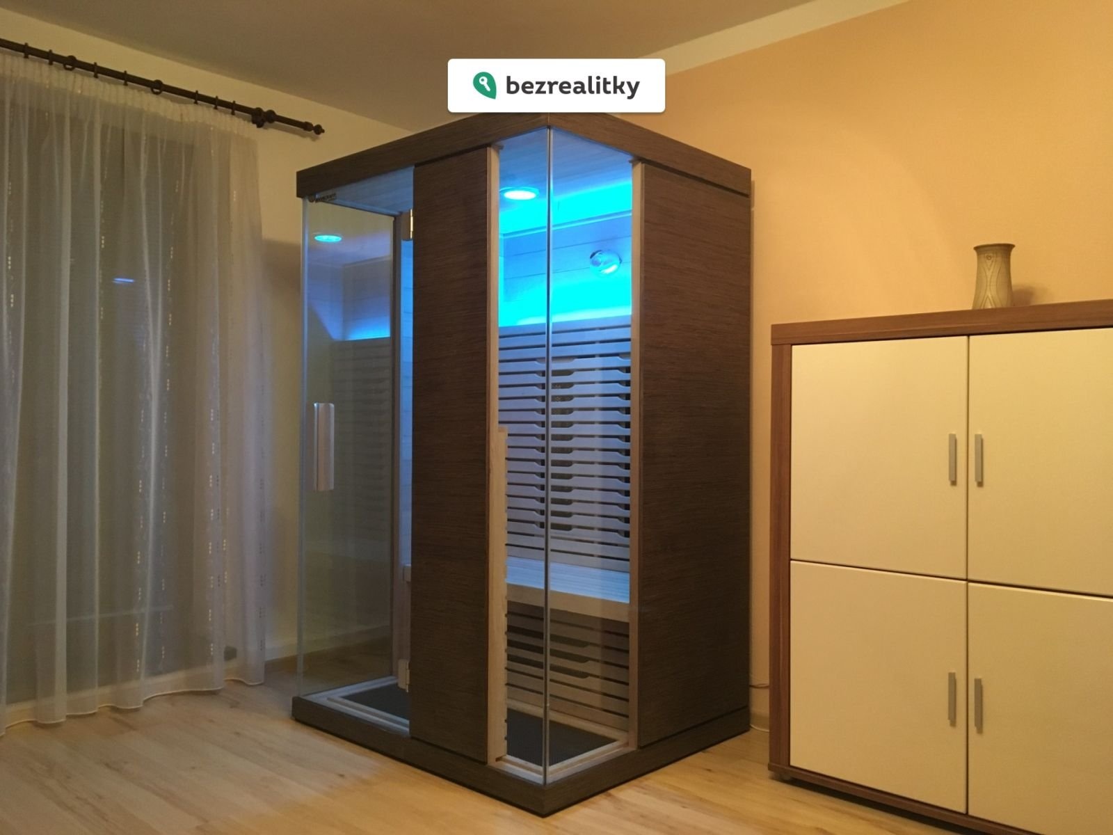Součástí apartmánu je sklep o velikosti 1,60 m² a venkovní parkovací stání o ploše 14 m² přímo u domu. Cena zahrnuje kompletní vybavení – nábytek, kuchyňskou linku včetně spotřebičů, saunu, zahradní nábytek a další vybavení. V koupelně je připojení pro pračku.