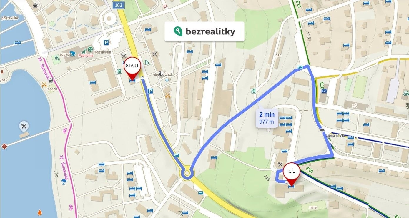 Nemovitost se nachází v klidné části obce v docházkové vzdálenosti od centra a nedaleko od jezera a bruslařské dráhy, Aquaworld Lipno a obchodu Coop. V lokalitě dále najdete lyžařský areál, bobovou dráhu, Stezku korunami stromů, Království lesa a další atrakce nabízející aktivní trávení volného času pro všechny generace. Tato nemovitost je určena výhradně přímým zájemcům o koupi. Na inzerát můžete také reagovat přímo na webu Bezrealitky.