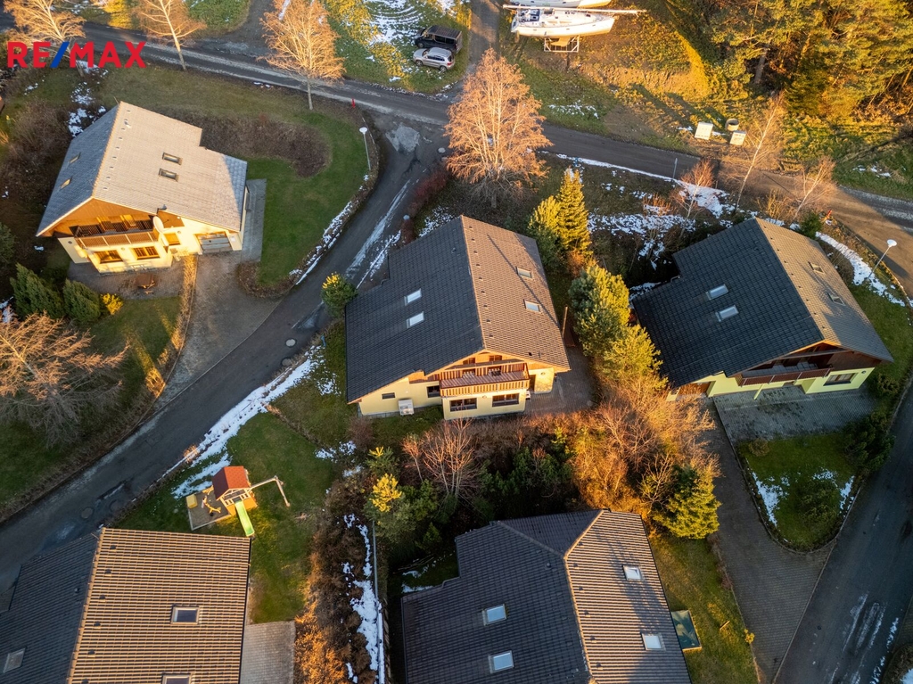 Dům se nachází v lukrativním Villa Parku, v klidné části u lesa, s krásným výhledem na vodní nádrž Lipno, vzdálenou jen 800 m.