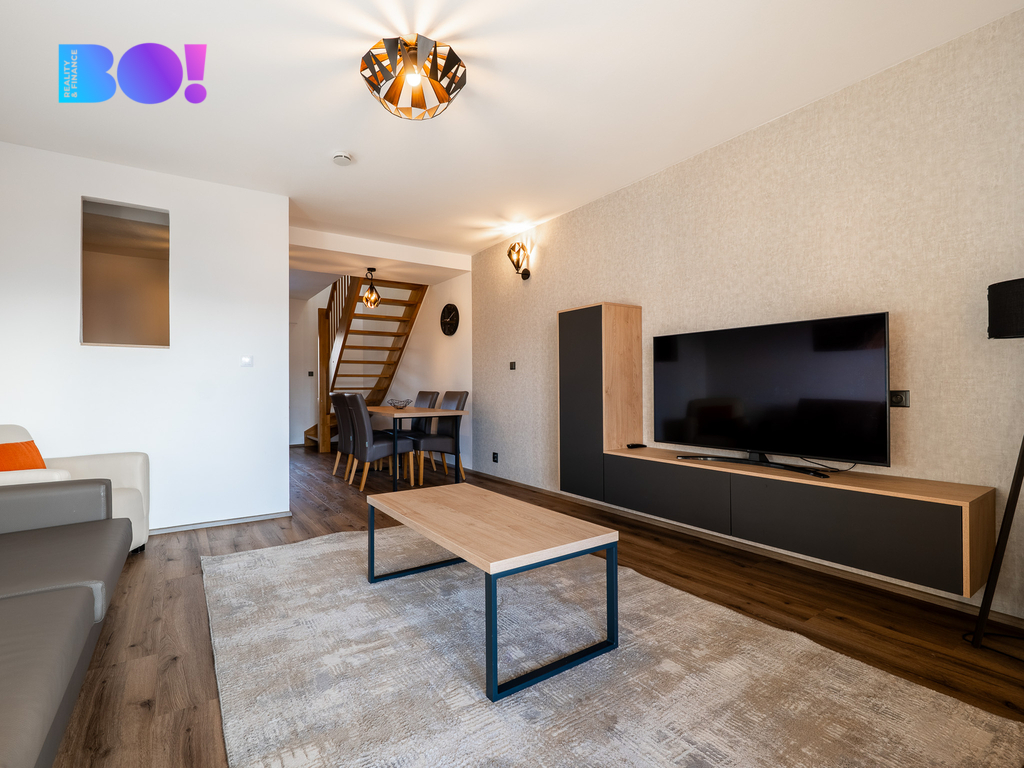 Dvoupodlažní apartmán o výměře 76,05 m² je po kompletní rekonstrukci, zařízen novým nábytkem, doplňky a nachází se v 1.patře budovy.