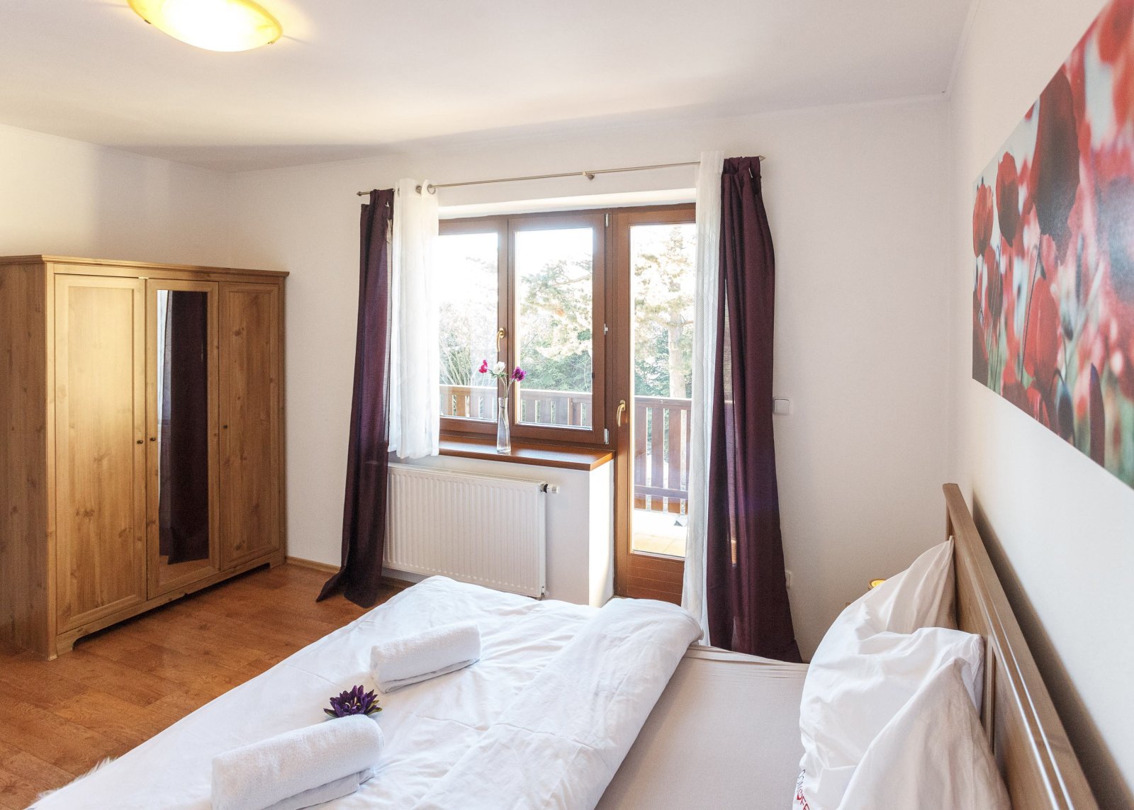 Se souhlasem majitele nabízíme k pronájmu řadový dům, který je určen jak k rekreaci, tak k trvalému bydlení a nachází se na velmi pěkném místě přímo v obci Lipno nad Vltavou, 200m od pláže. Dům je nadstandartně a velmi vkusně vybaven a je určen k okamžitému bydlení, rekreaci. Dispoziční řešení domu je 3+KK se zahradou, zastavěná plocha domu a nádvoří je 65m2. V přízemí domu se nachází předsíň, obývací pokoj s kuchyní, ze které je vstup na zahradu, dále barový pult a jídelní kout, samostatné WC s umyvadlem, technická místnost. V technické místnosti se nachází elektrokotel s bojlerem, pračka (v každém domě) a místnost také slouží k uskladnění zahr.nábytku nebo kol a lyží. V patře se nachází dvě velmi prostorné ložnice z nichž jedna je s balkonem. V každém pokoji jsou 2 lůžka s přistýlkami, šatní skříň, noční stolky. Dále se v patře nachází koupelna s rohovou vanou a komora na uskladnění prádla. Vytápění domu je elektrokotlem s dálkovým ovládáním, vodovod a kanalizace je obecní.