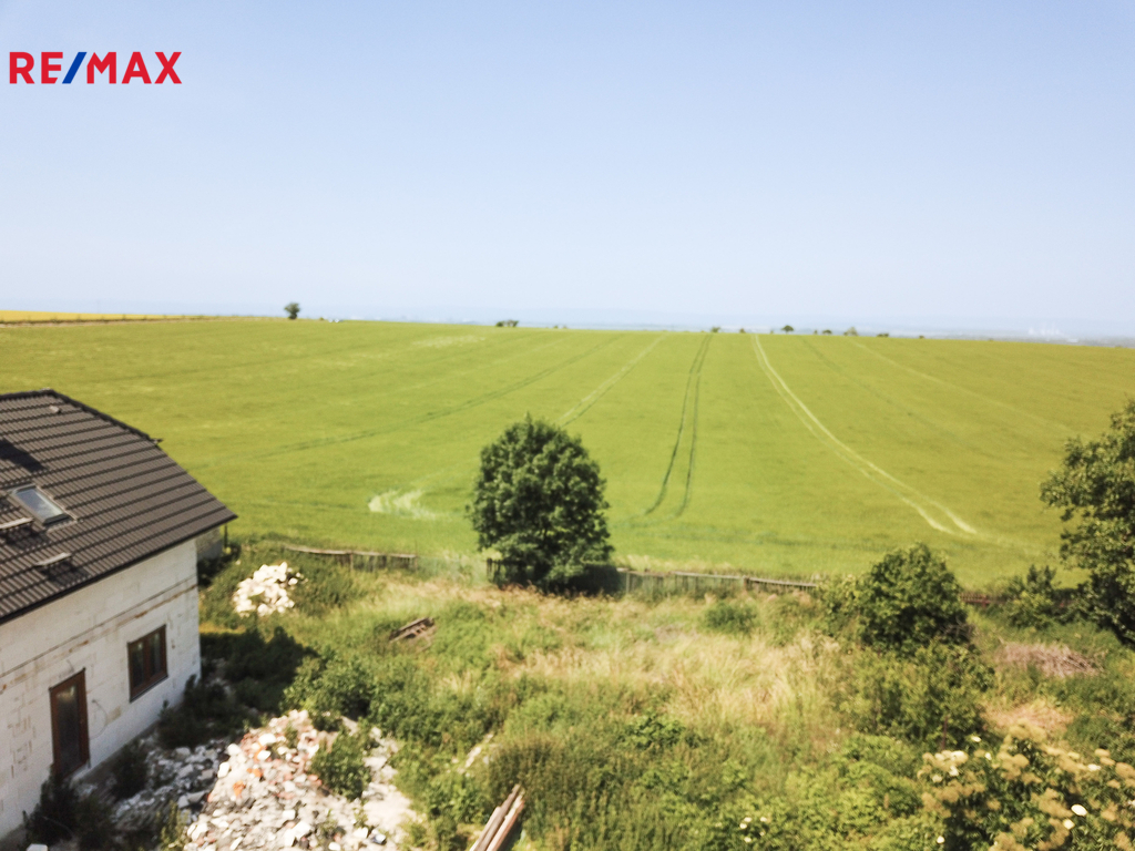 Pozemek: 911 m², rovinatý, slunný, s výhledem na horu Říp.