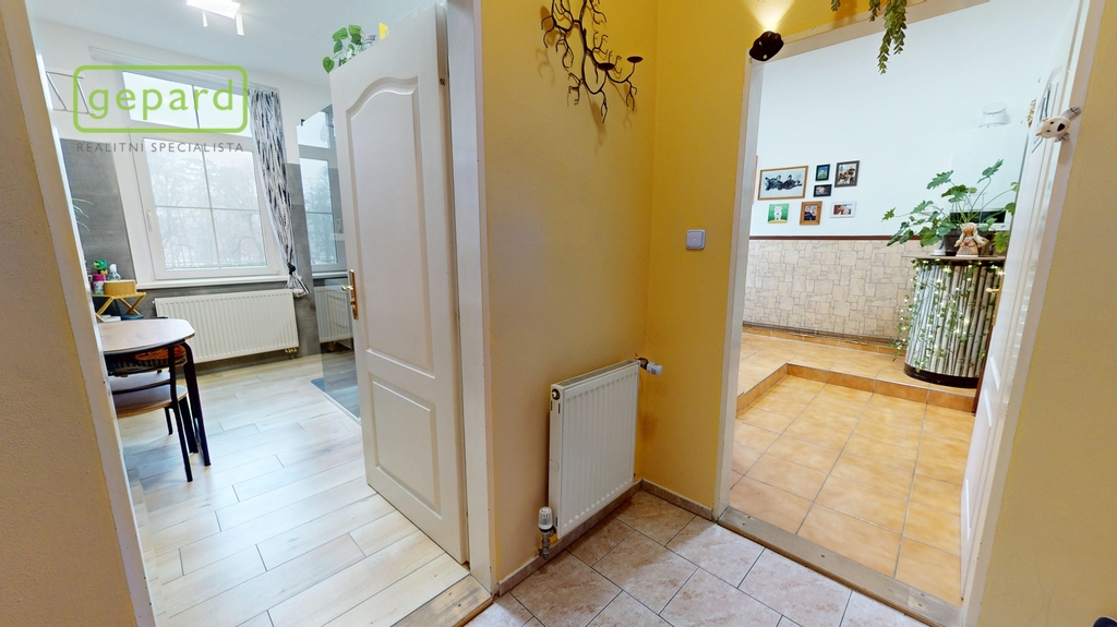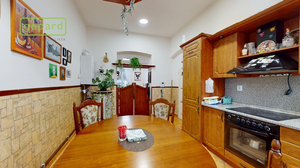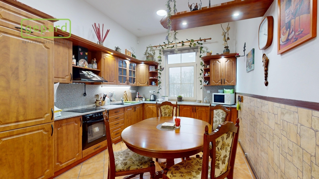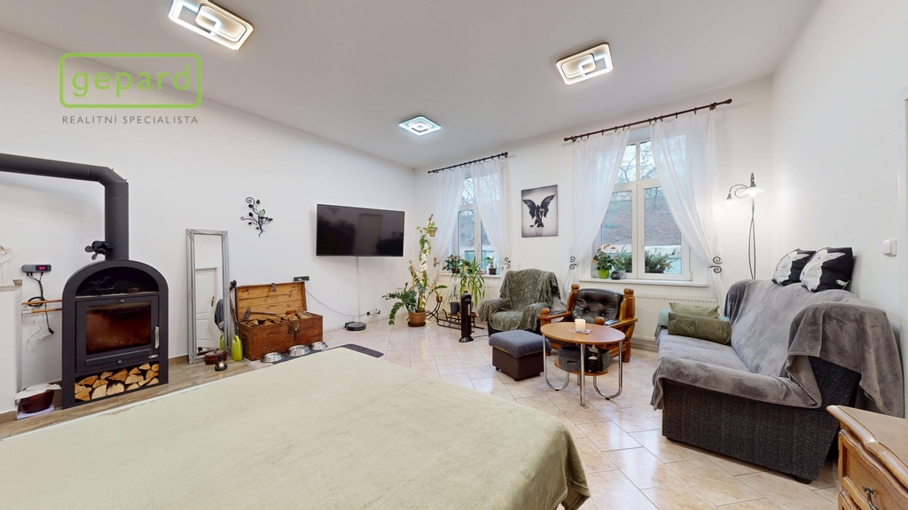 Obývací místnost s velkorysým prostorem jako středobod tohoto krásného bytu vybízí ke svolání celé rodiny na společně strávený čas a disponuje dostatkem prostoru pro vybavení dle vašich představ a přání. Můžete si vybrat, zdali budete vytápět plynem a užívat si beztarostný život s topením či využítat kotel na dřevo s výměníkem a užít si praskající potěšení (uskladnění dřeva na zahradě přímo u domu). V kuchyni přijde vhod podlahové topení. Byt dále nabízí další samostatný pokoj, který je vhodný jako ložnice, dětský pokoj, pracovna či pokoj pro hosty. Velkorysá předsíň vybízí k odkládání všeho potřebného se zabudovanou skříní a komorou.