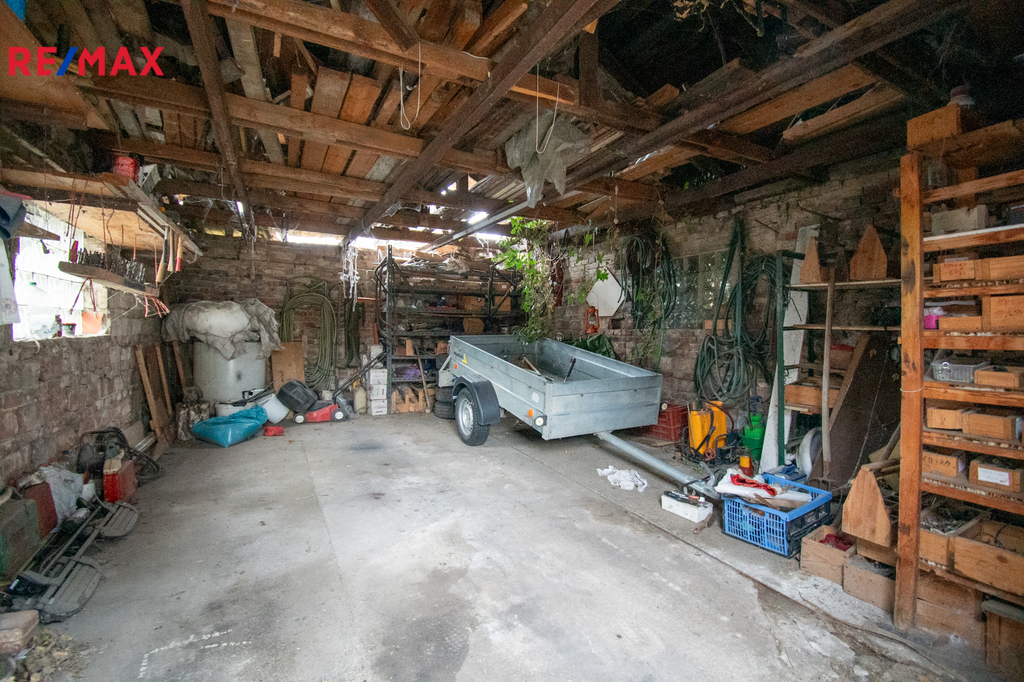 Součástí nemovitosti je prostorná garáž s dílnou, možnost parkování dalších vozidel je na pozemku a před garáží.