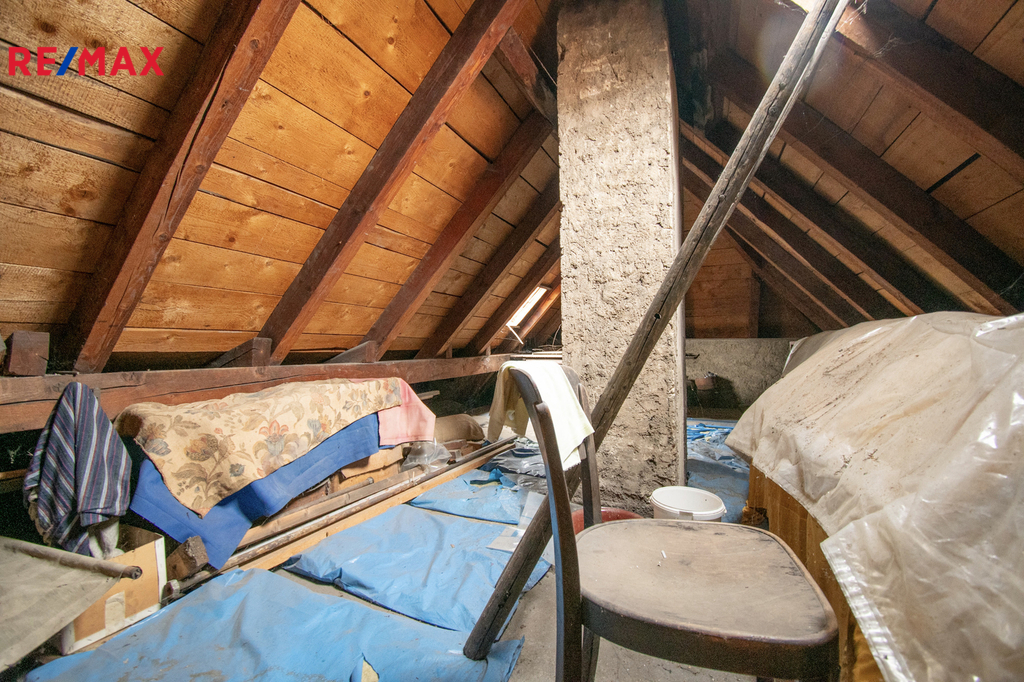 V přízemí se nachází kuchyně, obývací pokoj, koupelna s WC, vstupní hala se zádveřím, přímý vstup do sklepa, který je prostorný pod většinou stavby. Do patra vede původní dřevěné schodiště. V patře jsou dva průchozí pokoje s možností úpravy na neprůchozí, oba s vestavěnými šatnami což umožňuje moderní dispozici. Z jednoho pokoje je vstup na uzavřenou verandu, lze využít jako lodžii nebo další obytný pokoj. Dále se zde nachází místnost se vstupem do neobytného podkroví o výměře necelých dvacet pět metrů čtverečních, kde lze v rámci rekonstrukce vybudovat další koupelnu nebo obytný pokoj.