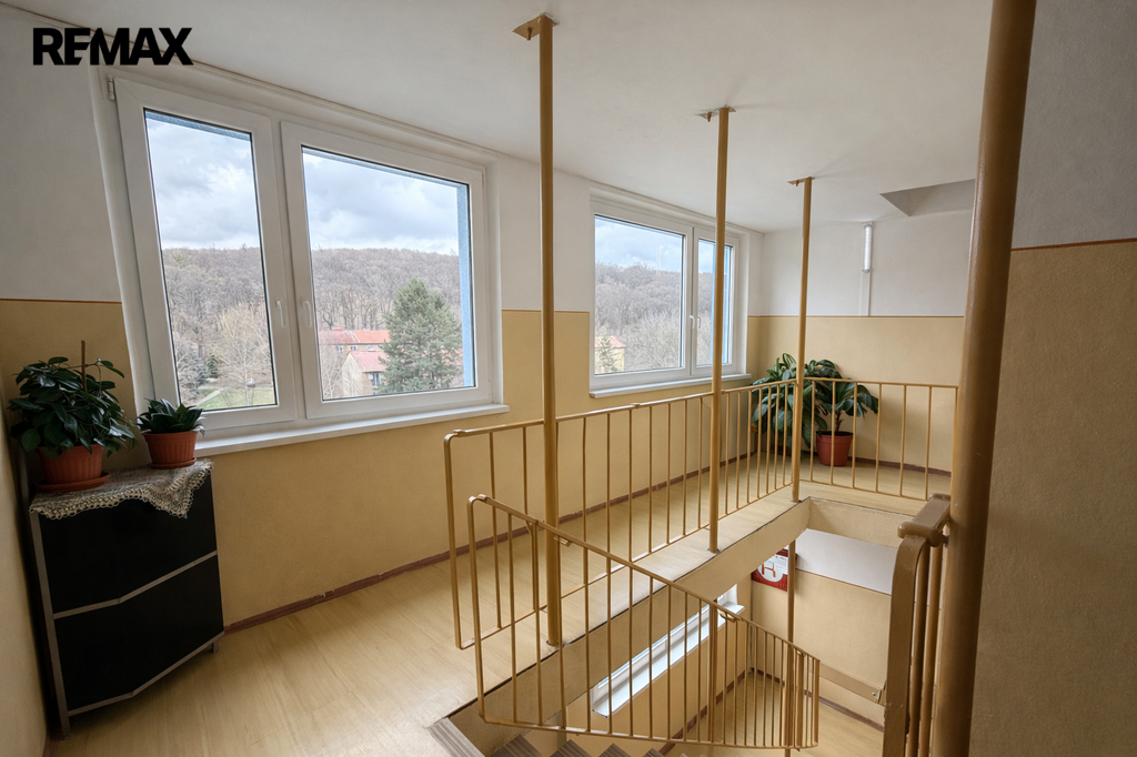 Dovolte mi Vám představit nabídku bytu 3+1 o celkové výměře 71,46 m², který se nachází v ulici Hamerská v části Litvínov – Hamr. Tento byt se nachází v nejvyšším patře zatepleného domu s výtahem, což přináší hned několik výhod – především více soukromí a také příjemný výhled do okolí. Dispozičně nabízí velkou vstupní halu, tři samostatné pokoje, kuchyň, koupelnu, samostatnou toaletu a malou komoru, přičemž další komora náležící k bytu je na chodbě - přímo naproti bytu. Součástí bytu je také sklepní kóje.
