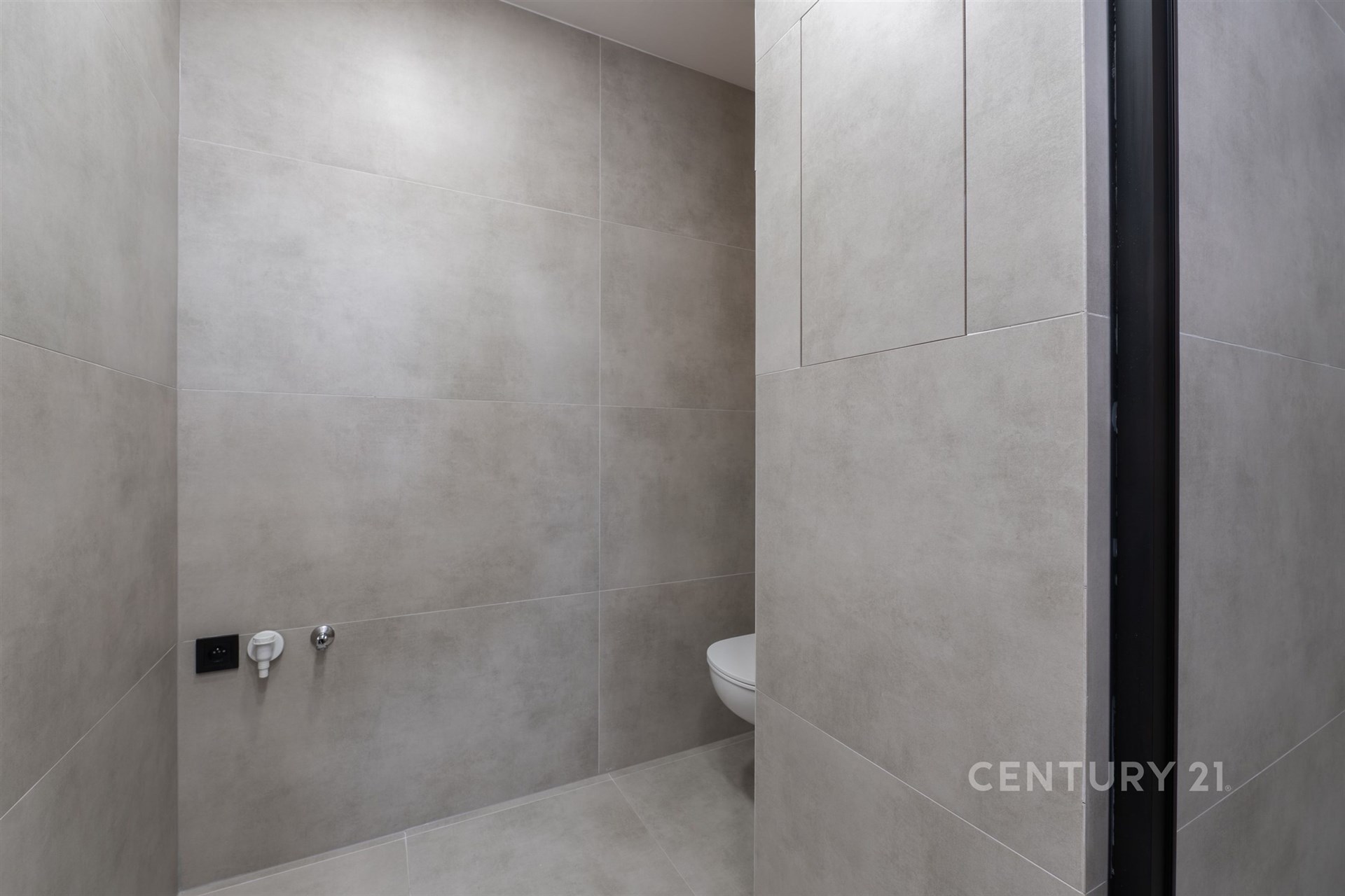 • Stylová koupelna se sprchovým koutem, velkoformátovými obklady, novým sanitárním vybavením, skříňkou pod umyvadlo, zrcadlem a WC