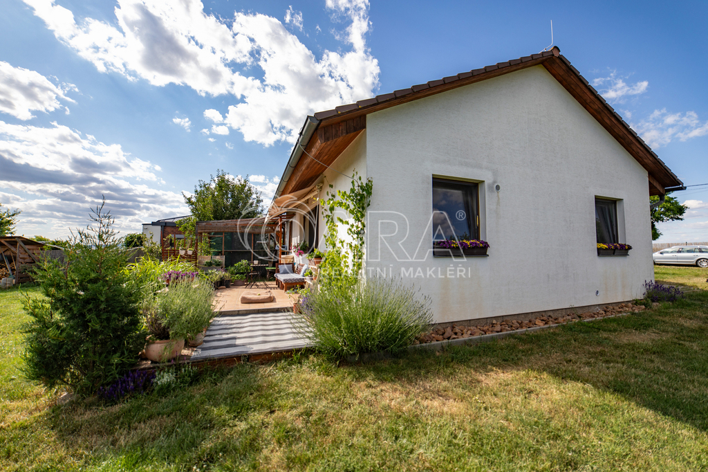 Dům je postaven pozemku o výměře 2043 m2 s unikátním panoramatickým výhledem na Brdy. Díky této poloze je zajištěn dostatek slunce a krásné výhledy do okolní krajiny. Přímo u domu začínají přírodní stezky, louky a lesy (CHKO)