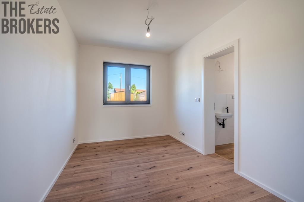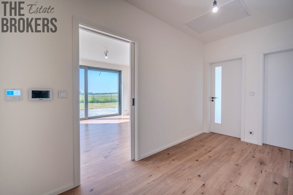 Součástí je také chytrá domácnost umožňující dálkové či centrální ovládání vytápění, osvětlení a zabezpečení – ideální pro moderní a efektivní provoz. Rovinatý pozemek kolem domu nabízí skvělý potenciál pro realizaci vašich představ – ať už plánujete bazén, pergolu, záhony nebo jen klidné posezení na slunci.