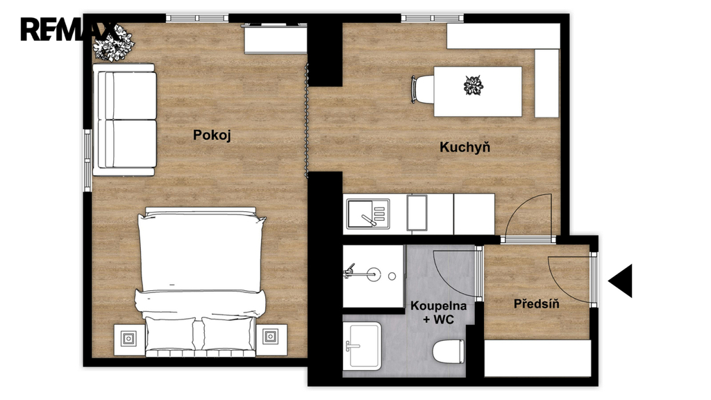- Dispozice bytu: 1+1