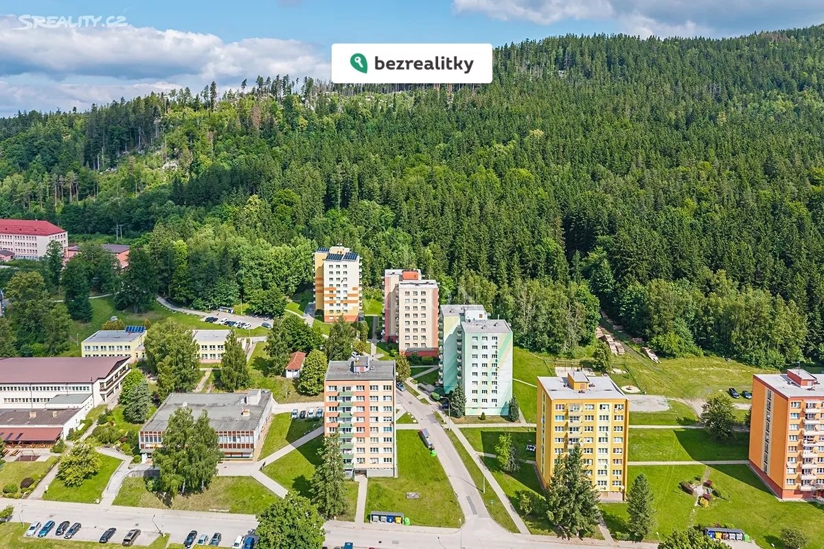 Byt se nachází v 7. patře z celkových osmi a má krásnou vyhlídku do okolních lesů. Byt je orientován na JV, je velmi světlý a prosluněný, dobře udržovaný, nabízí příjemný výhled z balkónu do okolních lesů. Disponuje užitnou plochou 73 m², což poskytuje dostatek prostoru pro pohodlné bydlení. Byt je částečně vybaven starším nábytkem, novou automat.pračkou a novým indukčním sporákem, nová lednice s mrazákem Samsung. V bytě byly zhotoveny štukové omítky ve všech pokojích, nové nátěry ústř.topení. Pokoje jsou neprůchozí, uzamykatelné. Bytové jádro je původní, vhodné k rekonstrukci.
