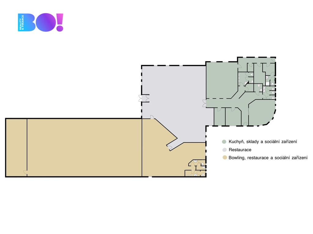 Součástí je 40 míst k sezení + 3 stoly přímo na bowlingu, bar a sociální zázemí.